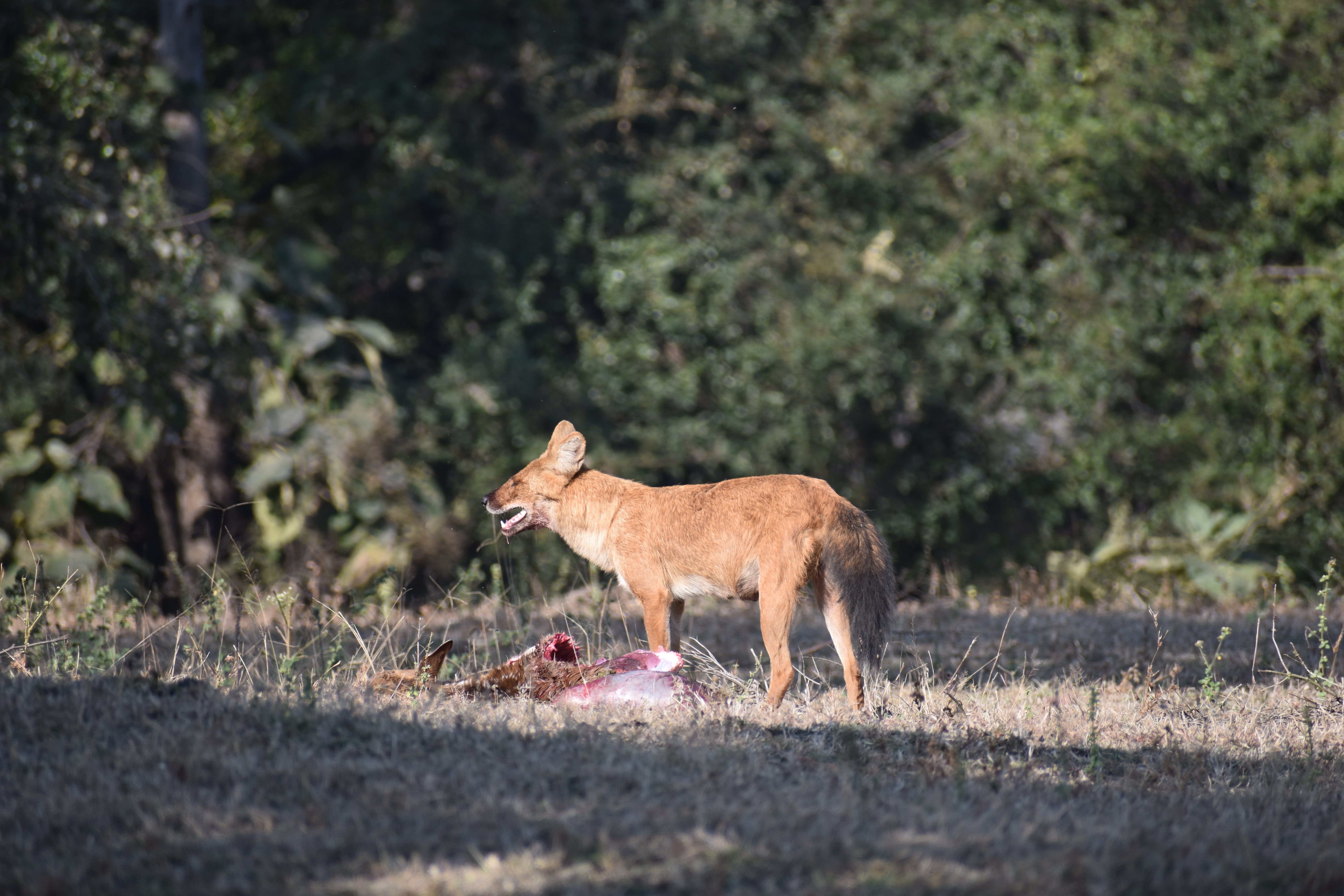 The love to feed on the Spotted deer and Sambhar in the forests that contain them. As a pack they work together to hunt their prey. They communicate by cackling and whistling sounds. Therefore sometimes also known as the whistling dogs.