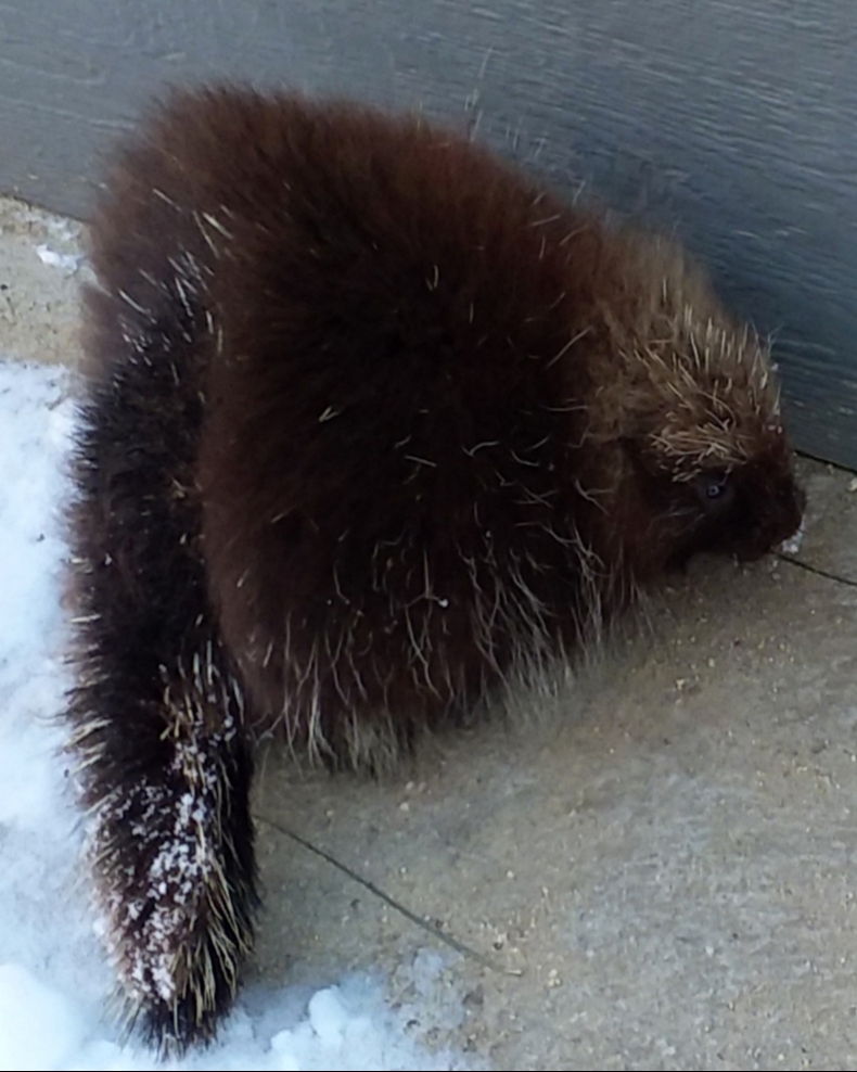 I spotted this little Porcupine last Winter in my friend's yard near the garage door when I arrived.