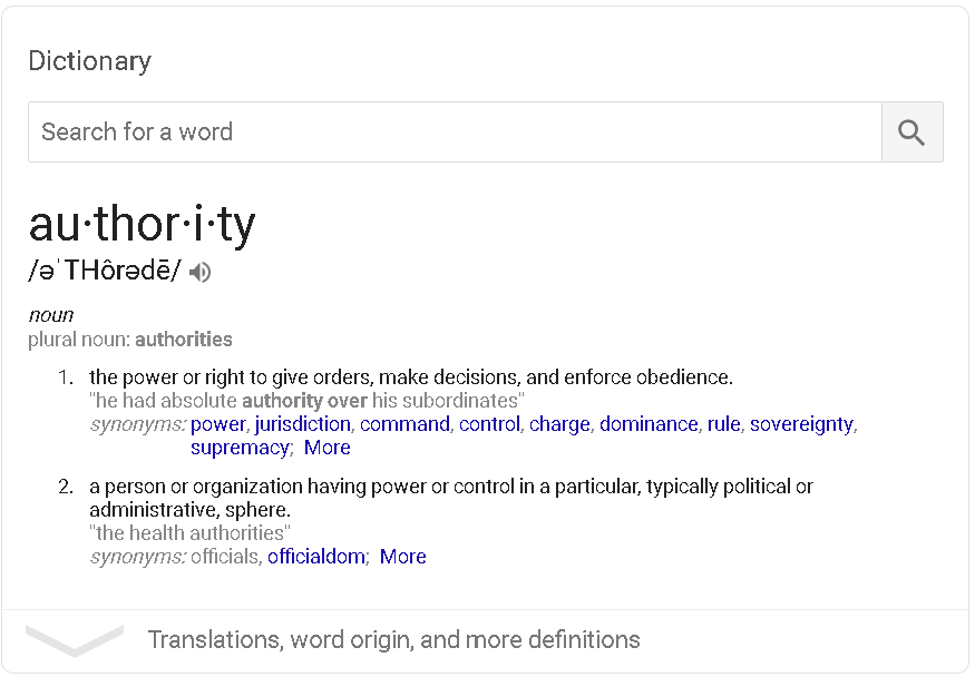 Authority, is an interesting word. A common use of the word is in reference to the police. Is this even a correct way to think of the police? Let’s look at the definition: