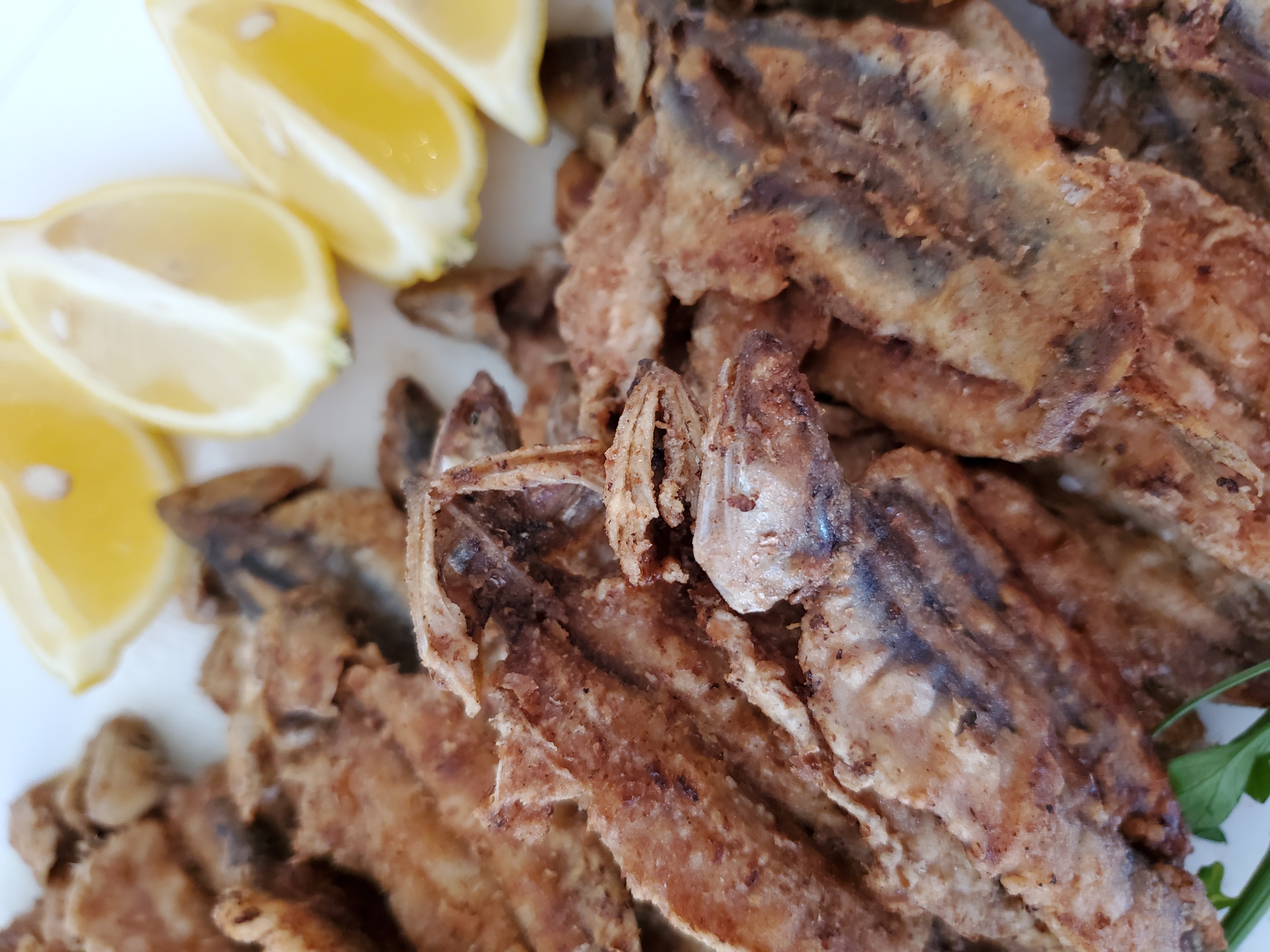 I then deepfry them in olive oil till they are golden brown.Then served with lemon.The next day,any leftovet I just simplify microwave.