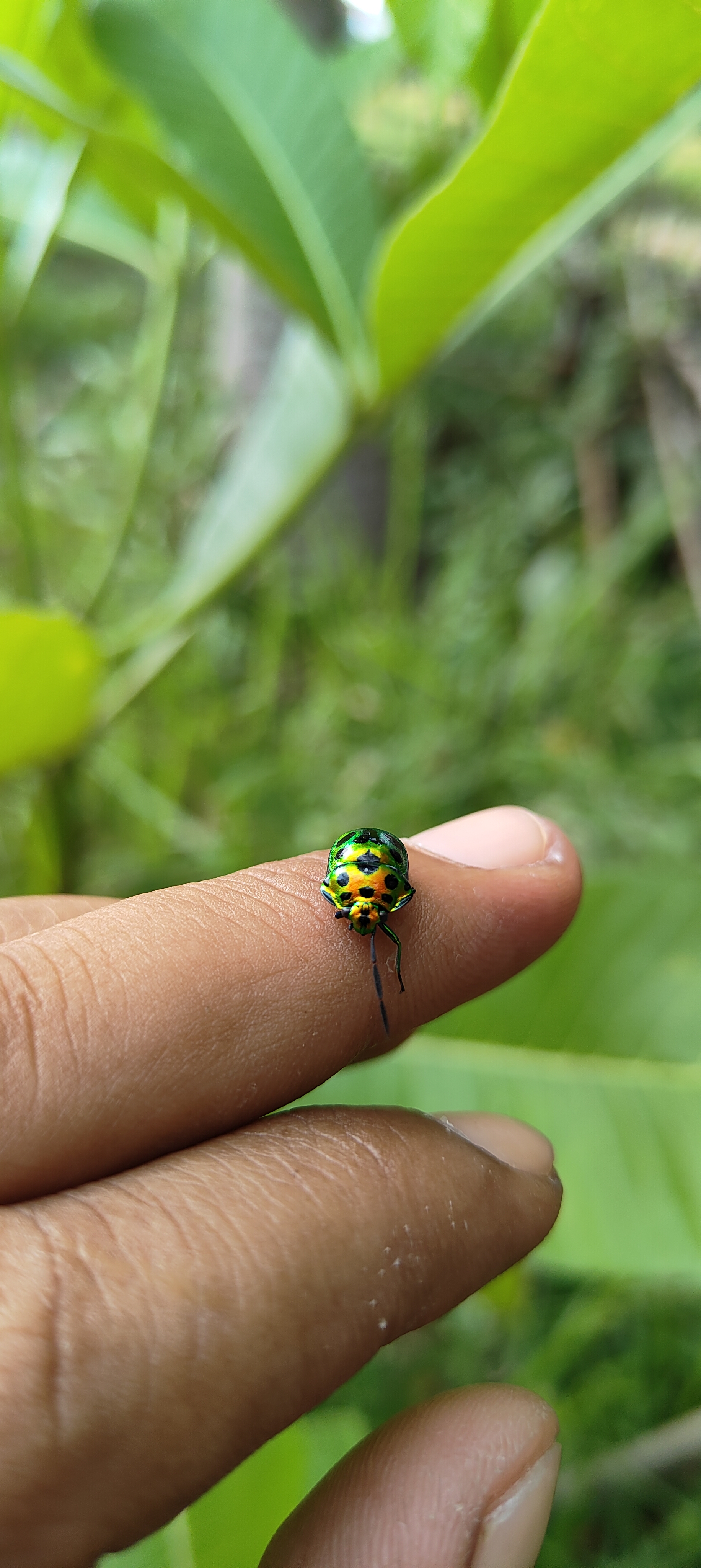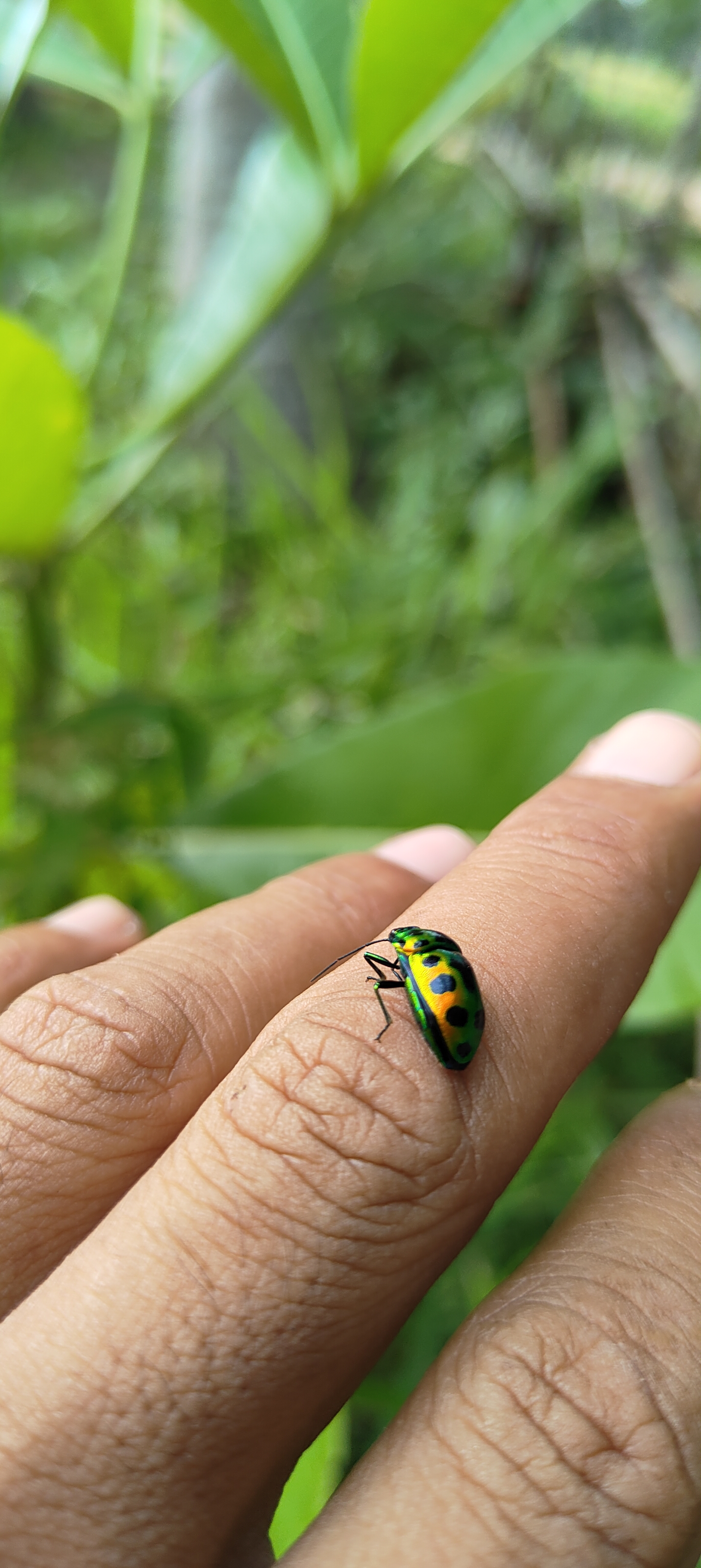 Hewan jewel bung ini mempunyai bentuk yang bagus dan indah sekali.Dan saya memfotonya saat berdiri di salah satu pohon kecil yang ada di halaman rumah saya dan waktu berdiri di tangan saya,dia sedikit jinak sehingga bisa saya pegang untuk naik ke tangan saya.
