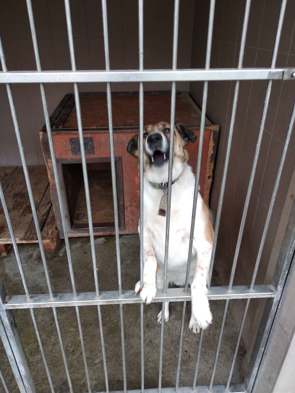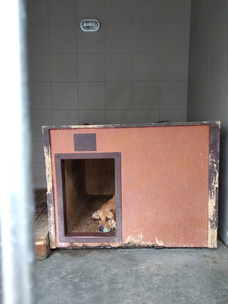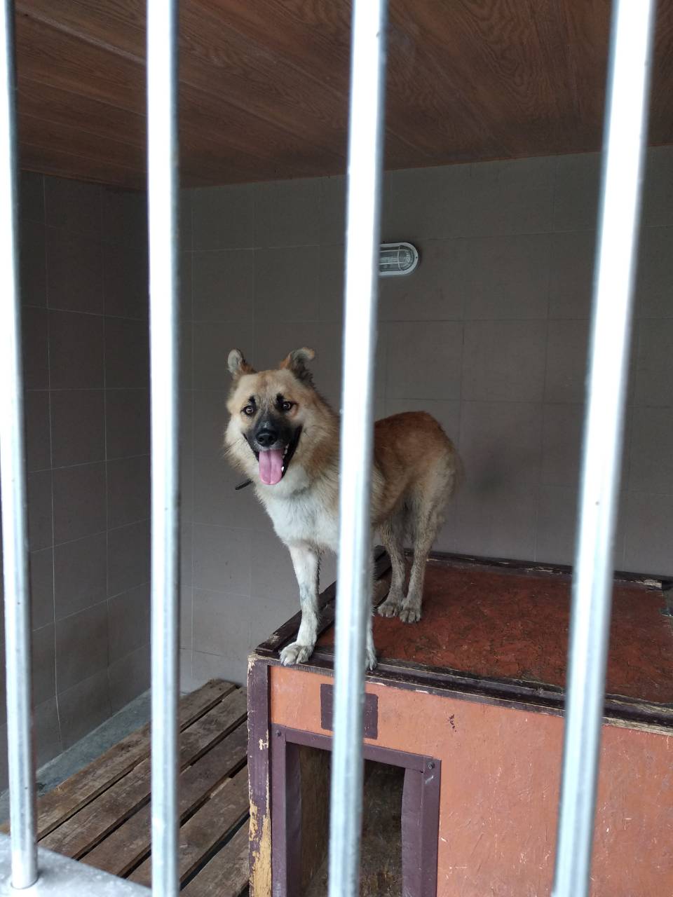 There are healthy dogs and dog with deformed limbs in the shelter. I did not manage to make a high-quality photo, because he was very afraid of people, and for some time I did not want to come up to me. The dog has no front paw ..