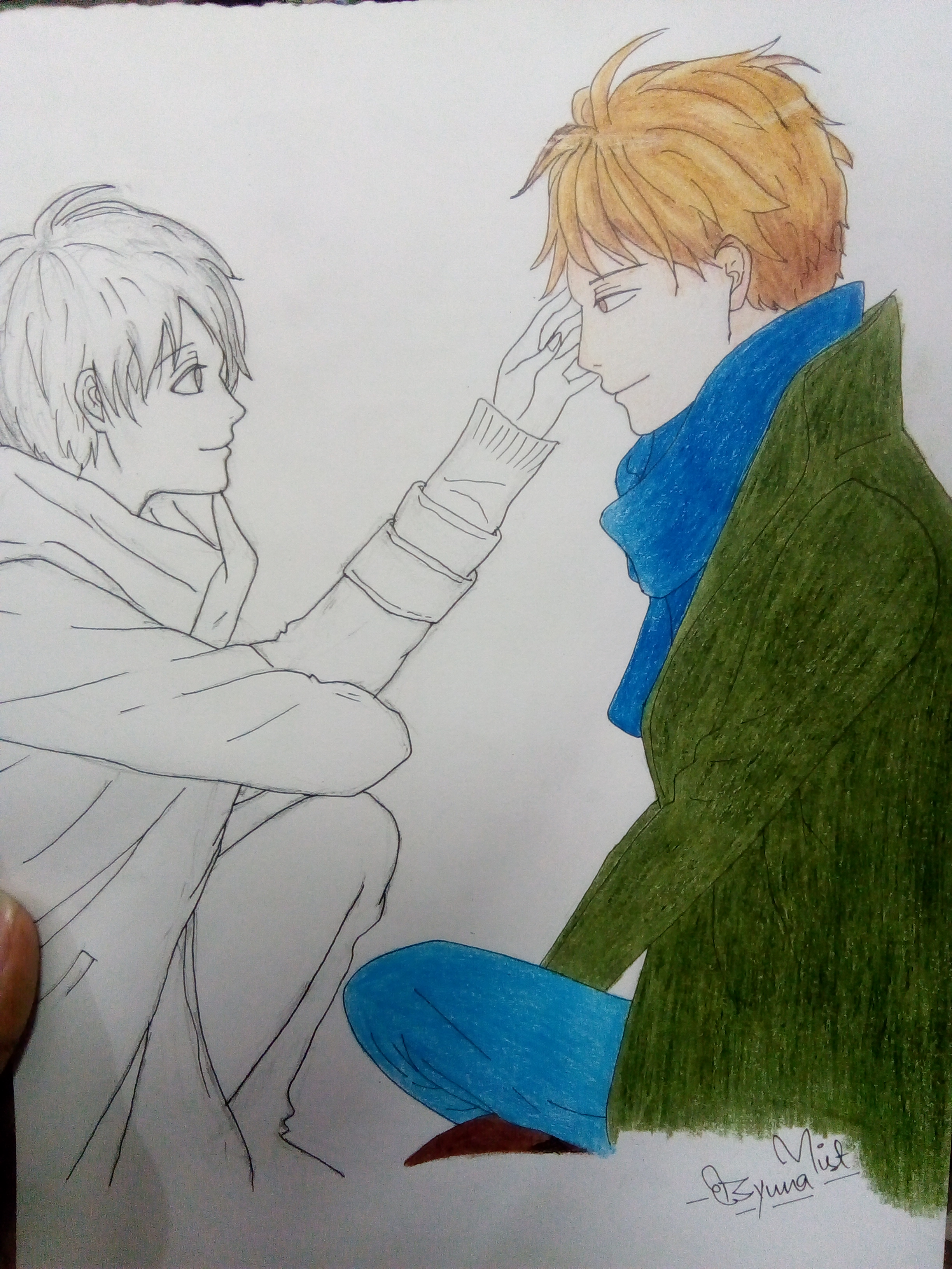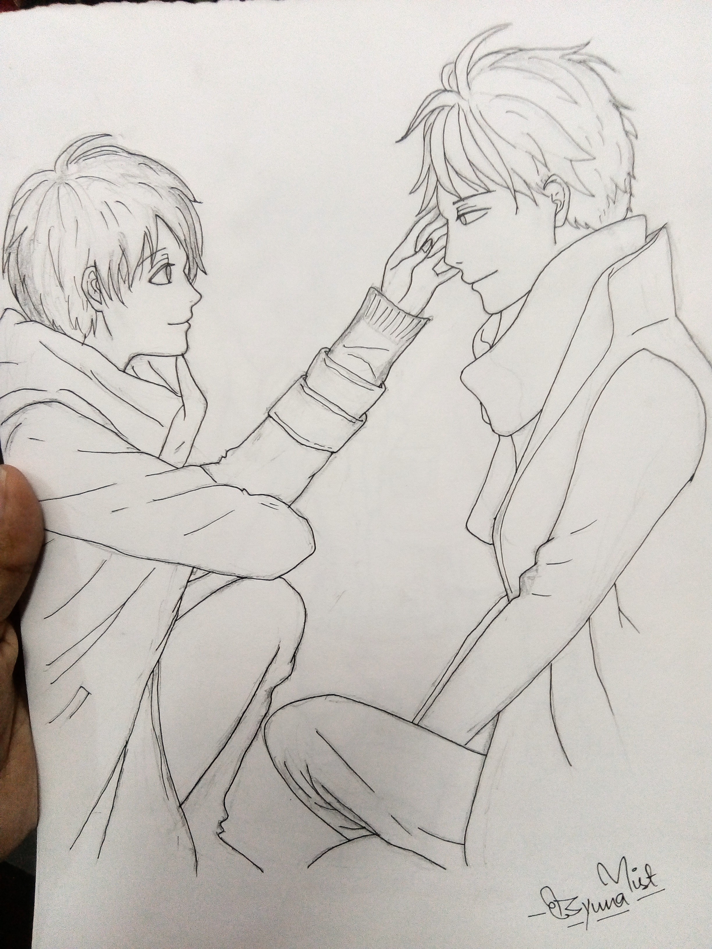 I like the feeling and the eye contact you drew in this picture :)