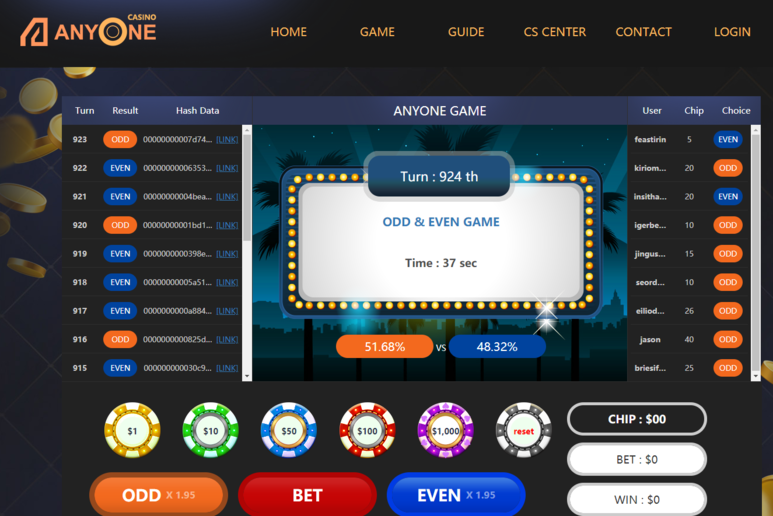 배당에 대한 수익은 현재 Quick slot, Tiger & Dragon, EVEN & ODD에서 발생하며