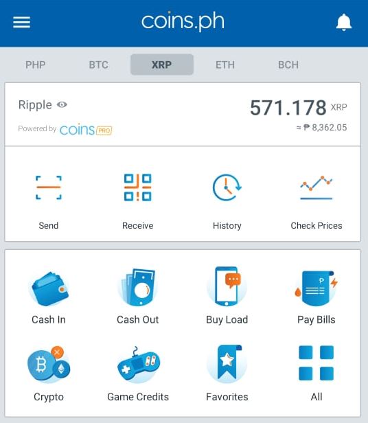 Wait for a couple of minutes for your XRP to reflect in your Coins.ph XRP wallet. You will receive a notification when the XRP is received already. After that, click All (four-square icon) and select Convert. If you want to convert all your XRP, just click Convert all. On the receiving end, it will automatically fill the equivalent PHP, then slide to convert. You can then cash out your money via different cash out options.