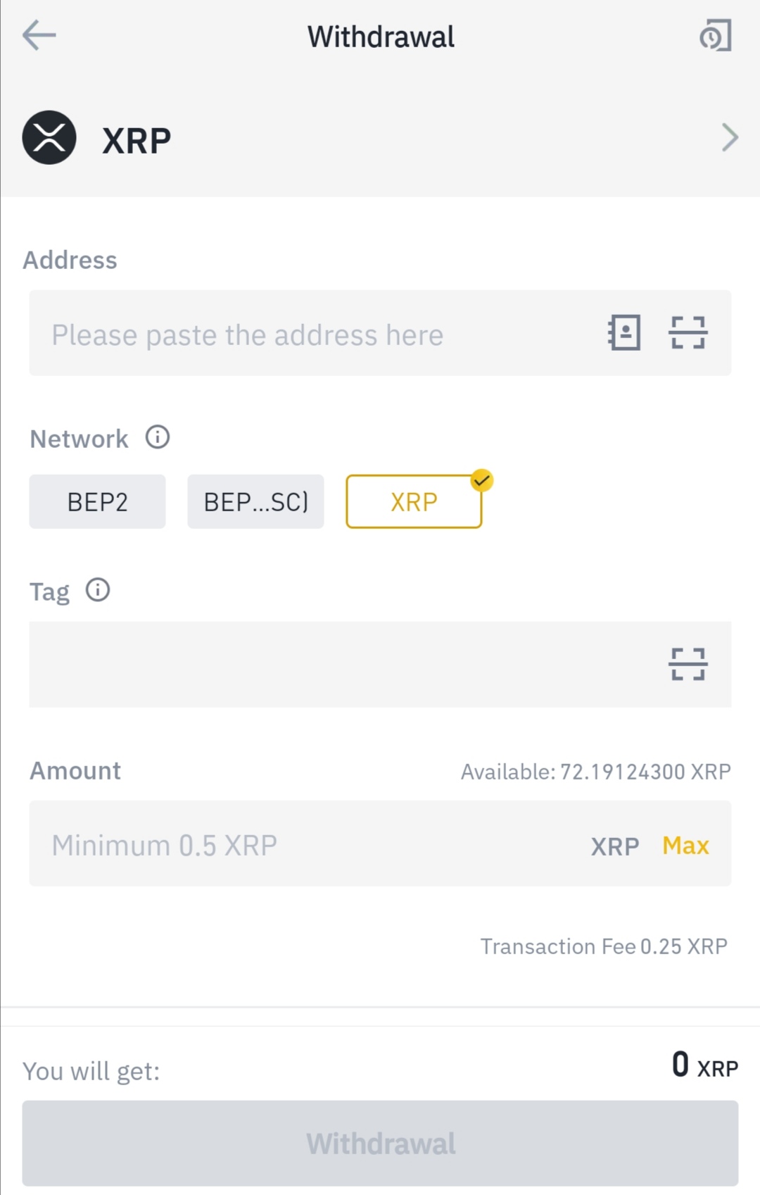 Amount: Enter the XRP amount you want to transfer or click Max on the right side of the bar.
