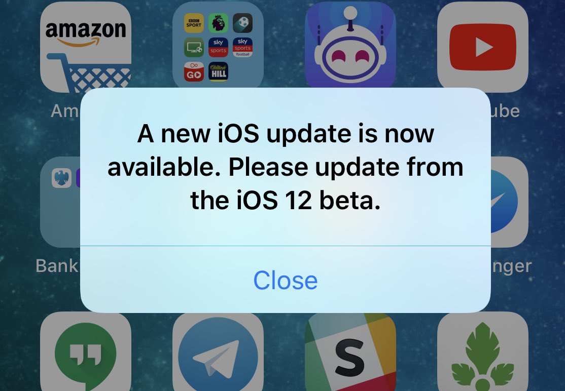 It's not the end of the world, of course -- a quick tap on "close" and the notification disappears -- but it sure is annoying, and doesn't really fill anyone with great hopes for a smooth roll out when the update becomes available generally.
