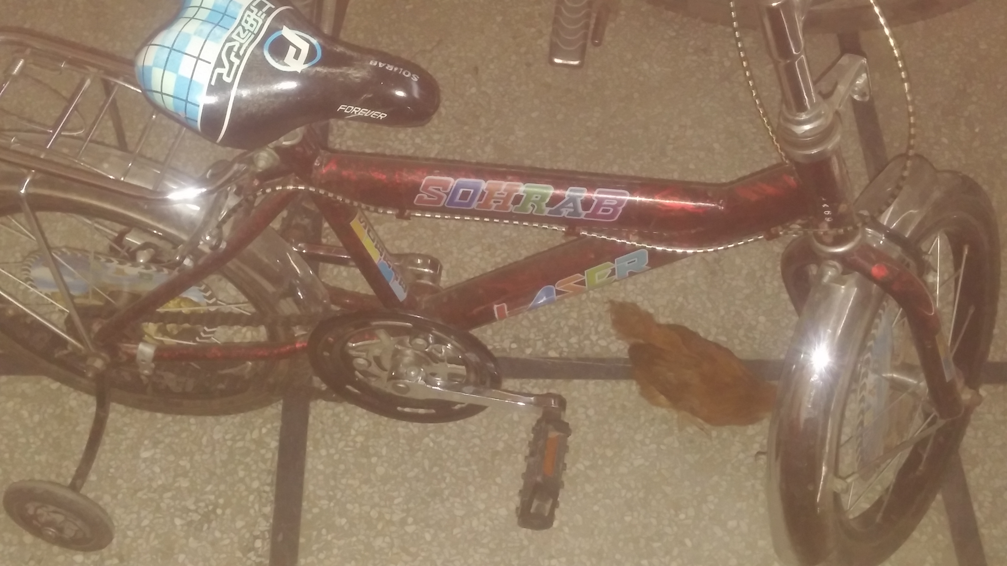 Today i am sharing the photography of my child bycle. It is really good and heavy bycycle made of good iron rods. My child love it a lot. It do not have gears . it is bearing in both wheals.