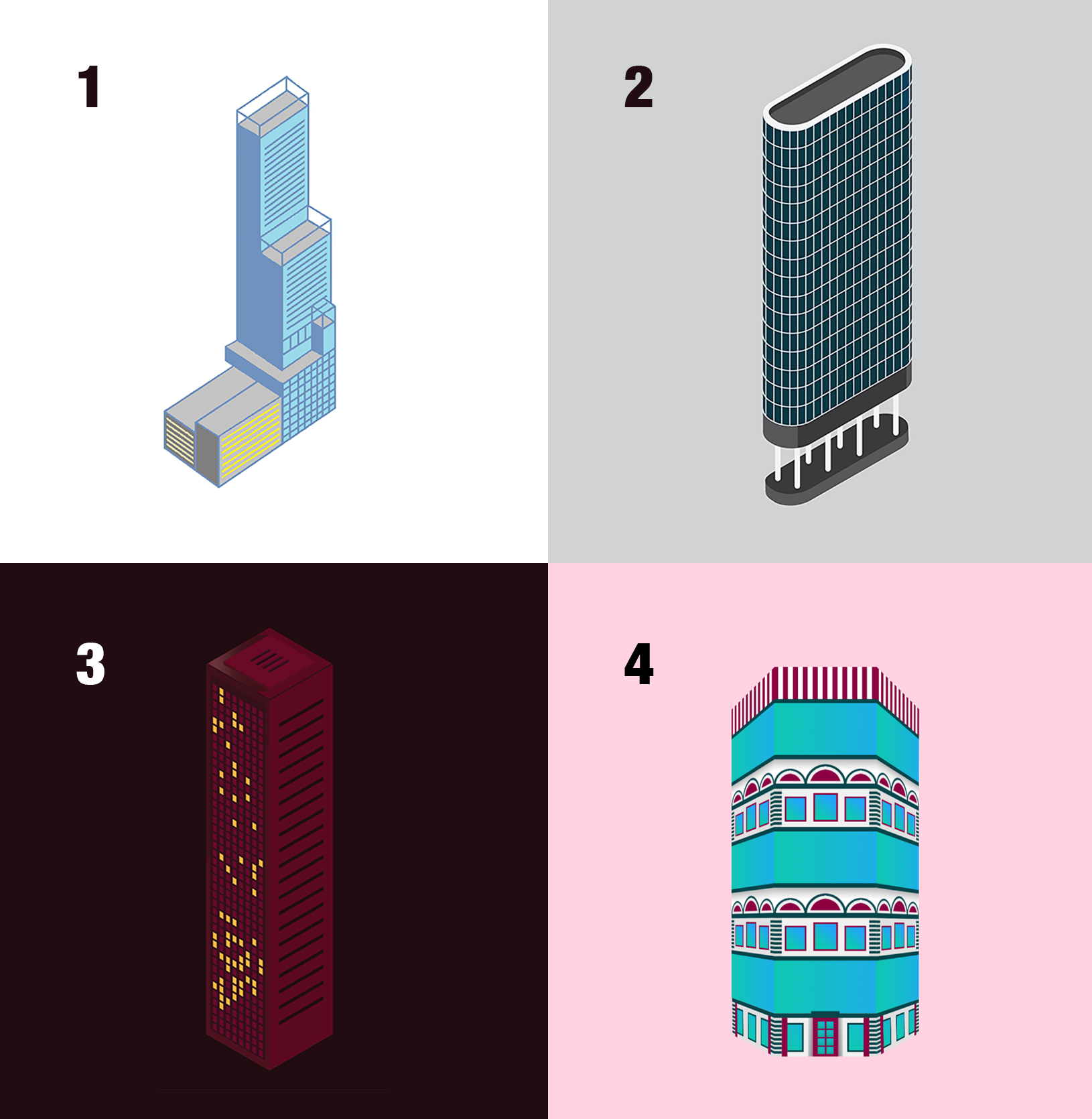 Here are the top entries from our Blockcities Skyscraper Art Contest 🏙️ congrats + thank you to everyone who participated! Now, we need your help to decide 🏆 First Place Winner! Vote for your favorite skyscraper using the image below as a key.