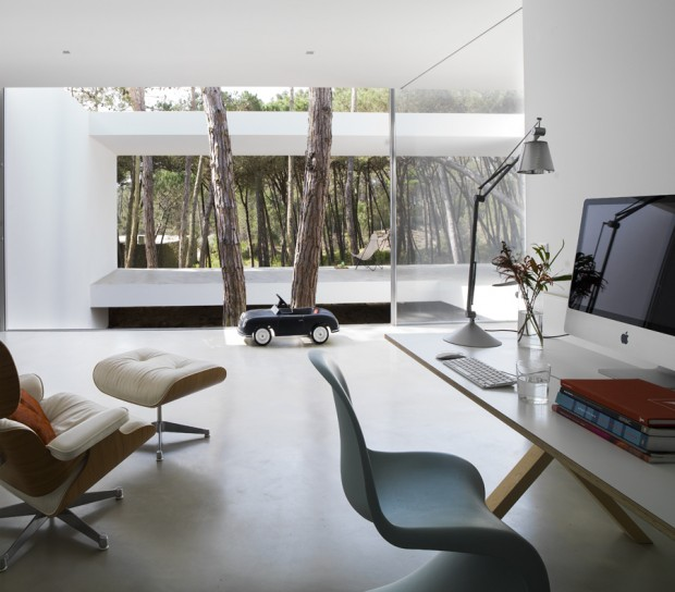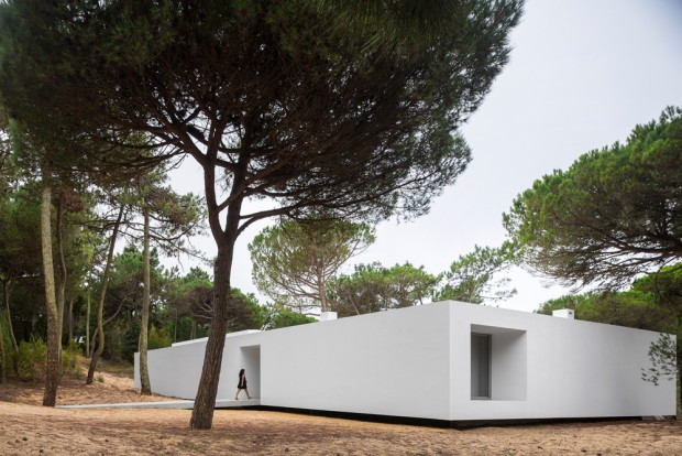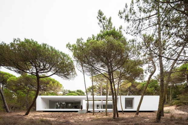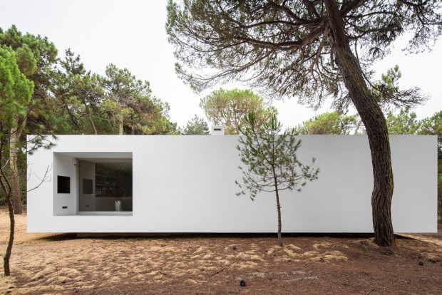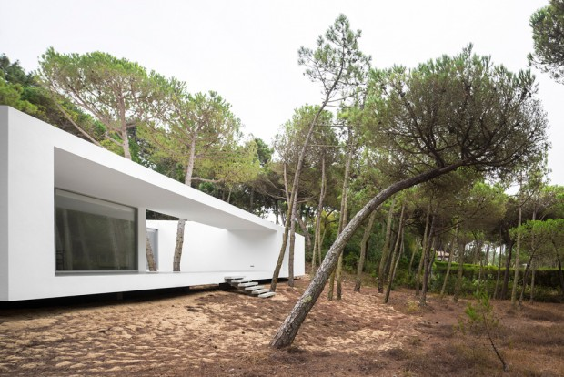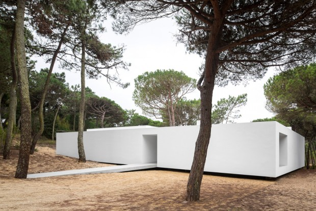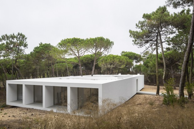 It is in the dense pine forest near Praia das Maçãs, seaside resort of Colares in Portugal, that the house hovers over the landscape.
