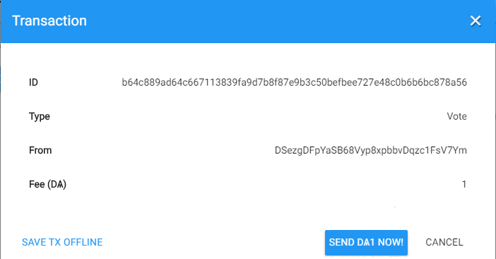 6 - Cliquez sur le bouton 'SEND' pour confirmer votre transaction de vote.