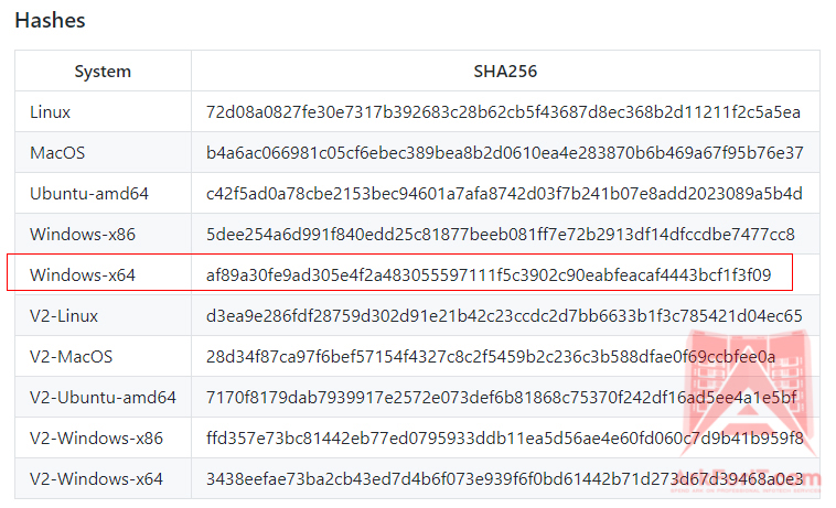There I will download the Windows 64 bit package. I will also take note of the Hash of the file, just past the download links and bug fixes.