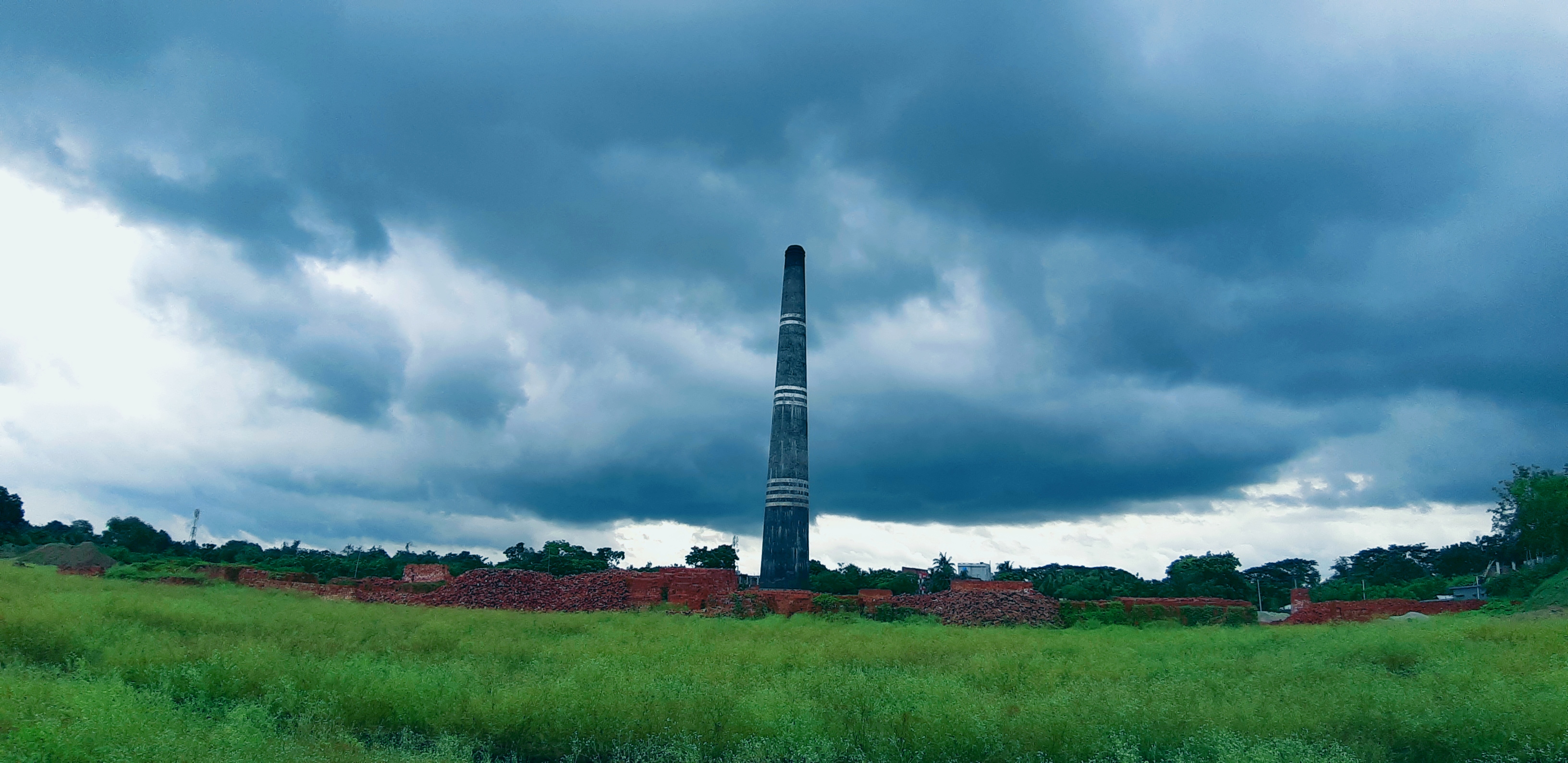 It's a picture of a beautyfull rainey day. In the center of the picture we can see a brick kiln.