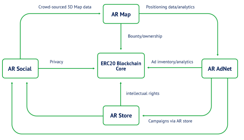 Blockchain объеденил все элементы проекта в одно целое. Рекламные ресурсы и кампании регистрируются в блочной цепочке и оплачиваются ARR. Баунти в ARR выплачивается строителям карт, и все транзакции в социальной сети проводятся в токене ARR. В дополнение к доходам от рекламы мы представляем значительную ценность при аренде карты AR для сторонних приложений и подключении их к нашей рекламной сети. Все права на интеллектуальную собственность и конфиденциальность гарантируются с помощью смарт-контрактов.