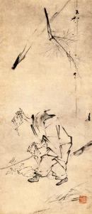 Unfortunately, because Chan painting (and that of the Southern Song period), has never been popular with Chinese collectors, all of the remaining works by Liang Kai are no longer in China but in Japan, where they have been rightfully prized and have had a huge influence on Japanese painting, especially ‘suibokuga‘ (水墨画) – Japanese monochrome ink painting.