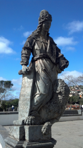 The statue pictured above is one of twelve sculptures created by Antonio Francisco Lisboa at the Sanctuary of Bom Jesus of Matosinhos, in Brazil. Antonio Francisco Lisboa was more popularly known as Aleijadinho (the lame one) because, it is said, he had leprosy.