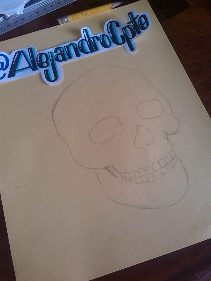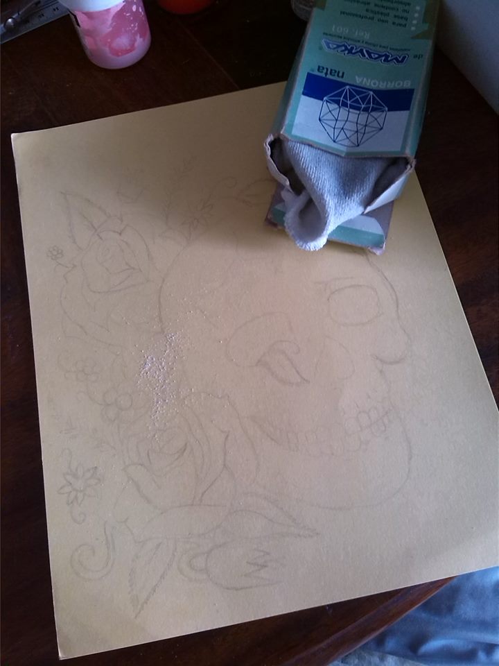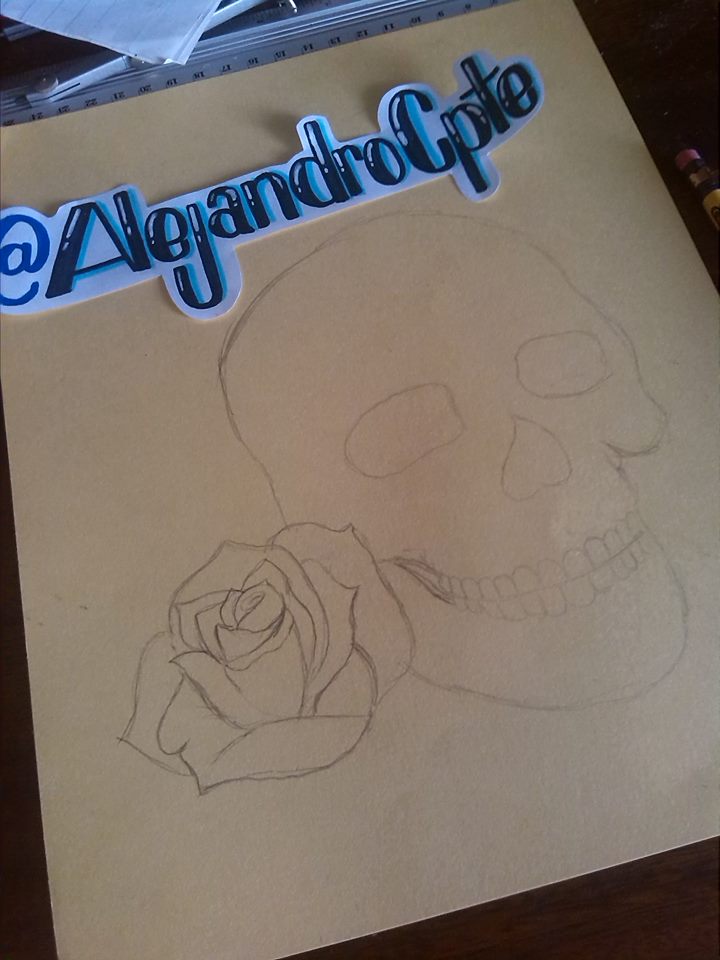 Friends on this occasion make a drawing of a skull with roses, I am also excited to record a part of the drawing.