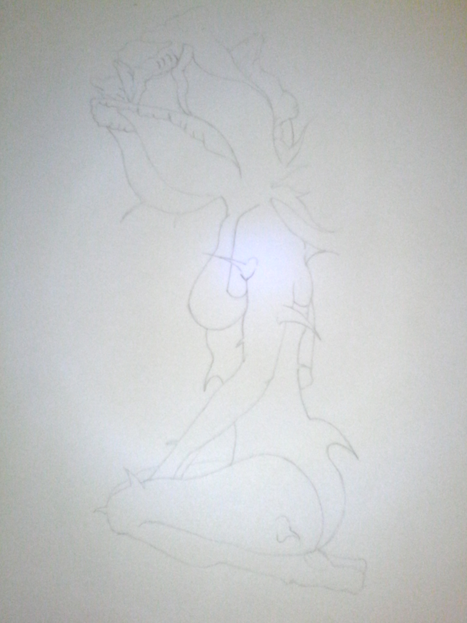 - Paso 2 : en este paso fui pintando el boceto con el mismo lapiz 2b, luego hice uso de la tecnica del puntillismo para algunas partes del cuerpo, tambien delinee y agregue pequeñas sombras.