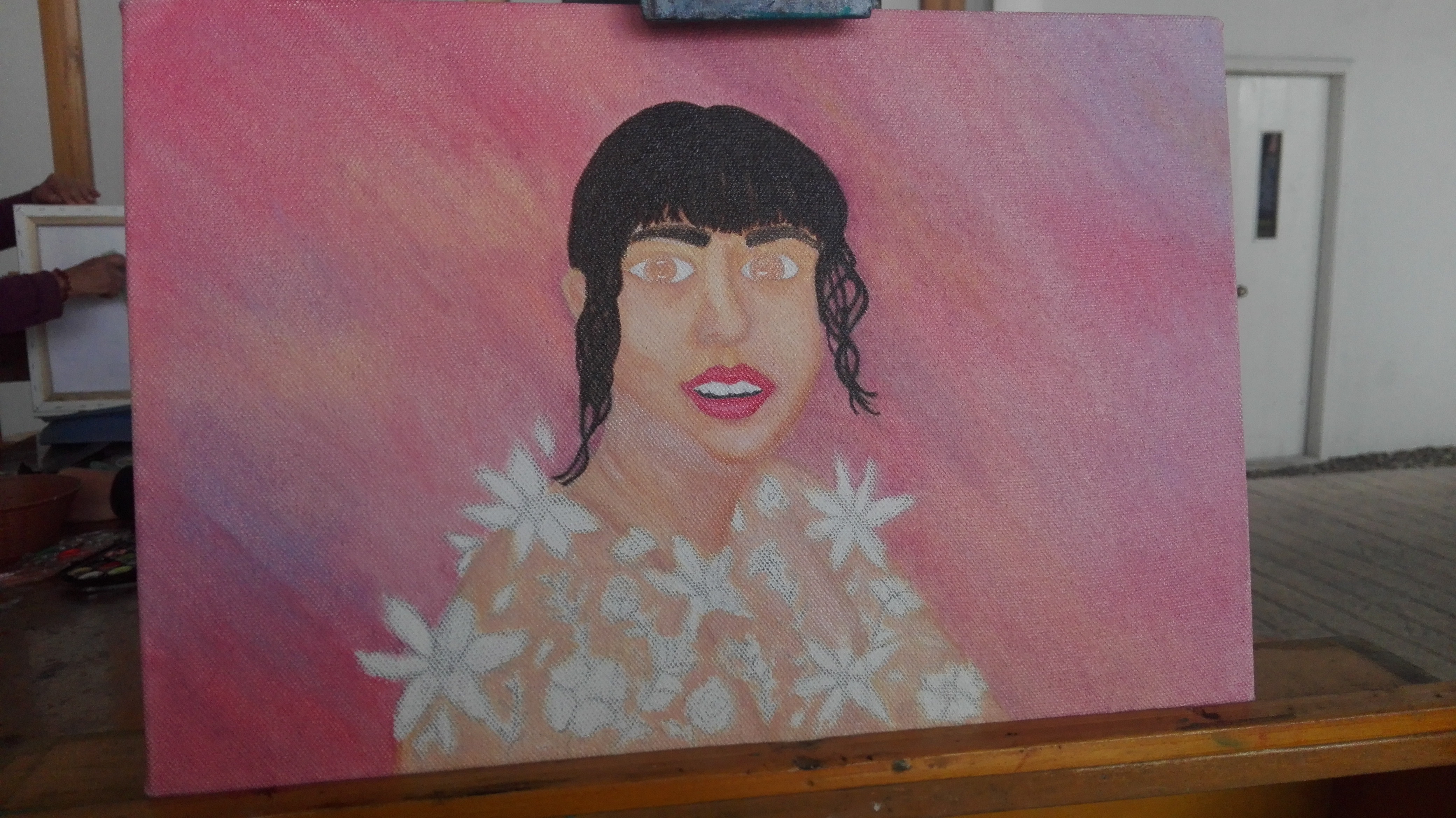 Me demore bastante y cuando me equivocaba me daba bastante frustración porque podia dañarla y tener que volver a empezar.Así que entendí que el oleo da esas oportunidades de equivocarte y repararlo de una manera muy kool jajaja..