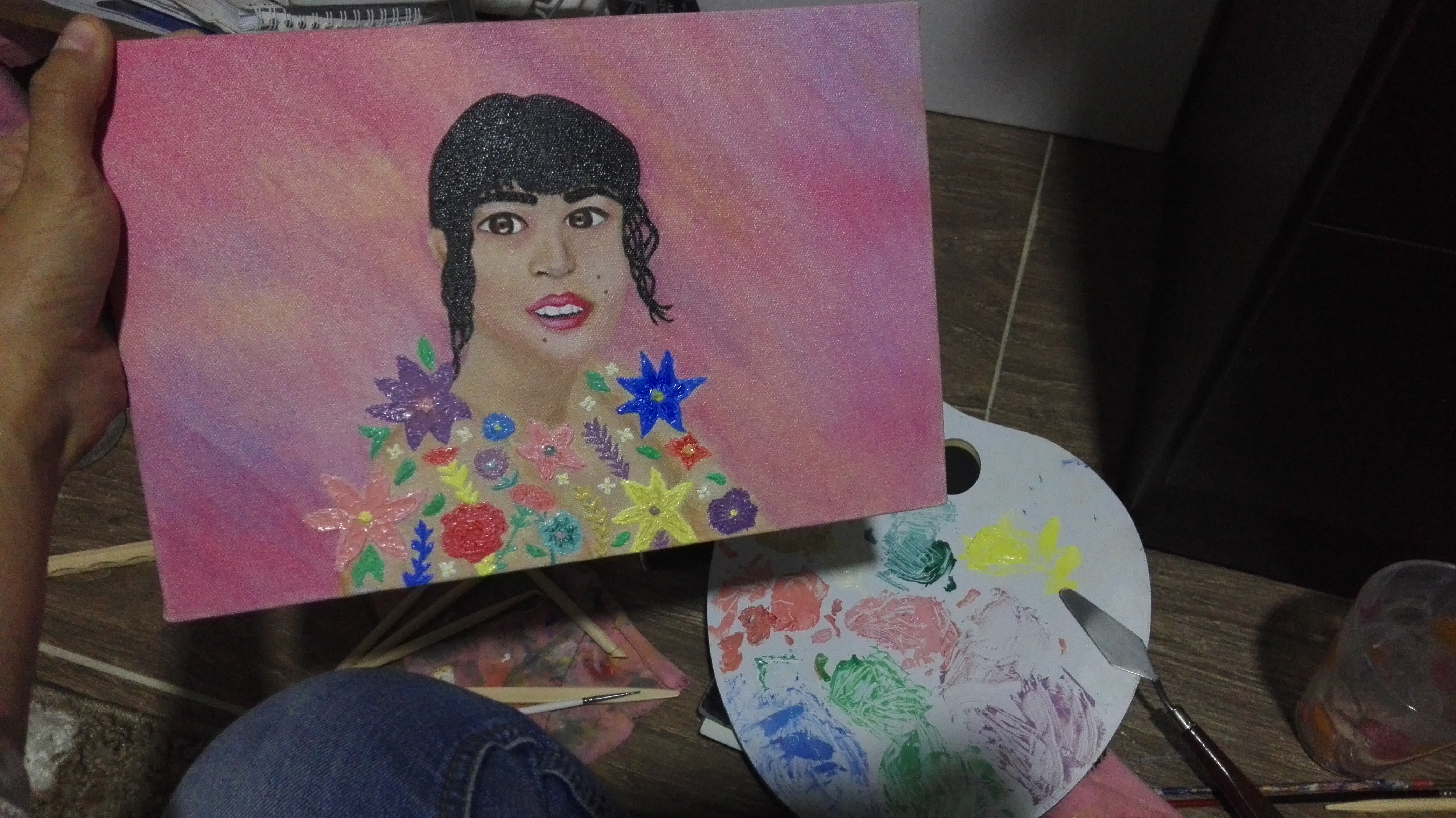 Aunque no soy muy buena en la figura humana decidí hacer mi primera pintura en oleo con ella.