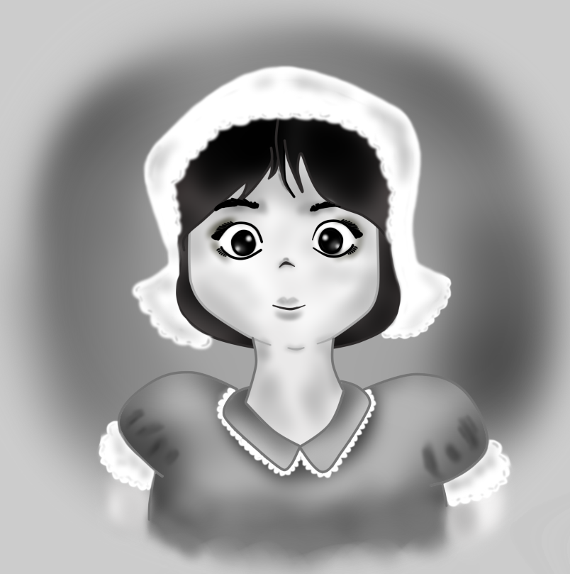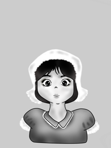 Next I will color the outfit of clothes, they used to use a kind of long dress or something with white embroidery stitching that I will add last to give the final touch. The skin color I have done with grayscale to make it look clearer.