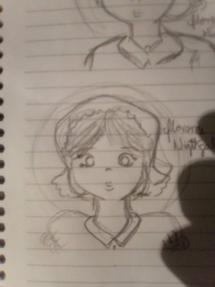Finally, I have added a more intense gray with some slightly darker shadows around it, making the shape of a circle behind the Nightingale cartoon, this being the final result after cutting and adjusting the drawing so that it can be appreciated in a better way.