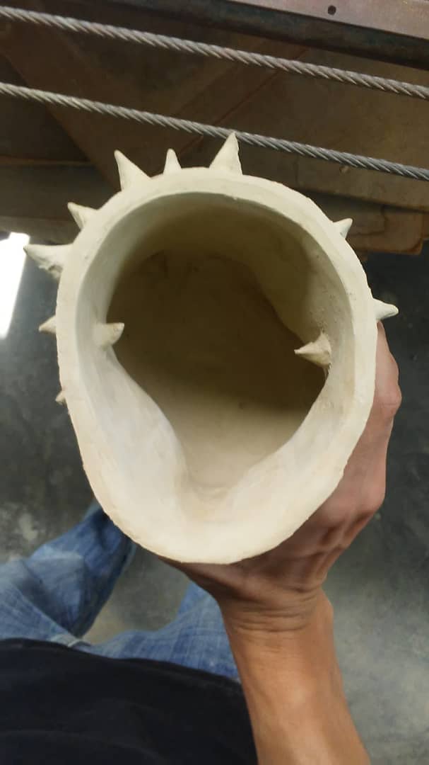 When intervening and element; a wall, paper or a piece of clay, I´d like to say that is being possessed by me by concept of the explanation for what´s happening, meaning that I take possession of it certainly, now that piece of material is inevitably linked to my existence, it´s mine like Saturn is from its rings, well it´s more than kinesthetic movements that transfigure the shape, I leave the moment there, and the moment includes everything that’s in me, it varies, but there are some constant characteristics: spikes, monochrome, perforations, organic and futuristic speaking shapes, I categorize them, or, I categorize myself as, “neogothic symbolism”
