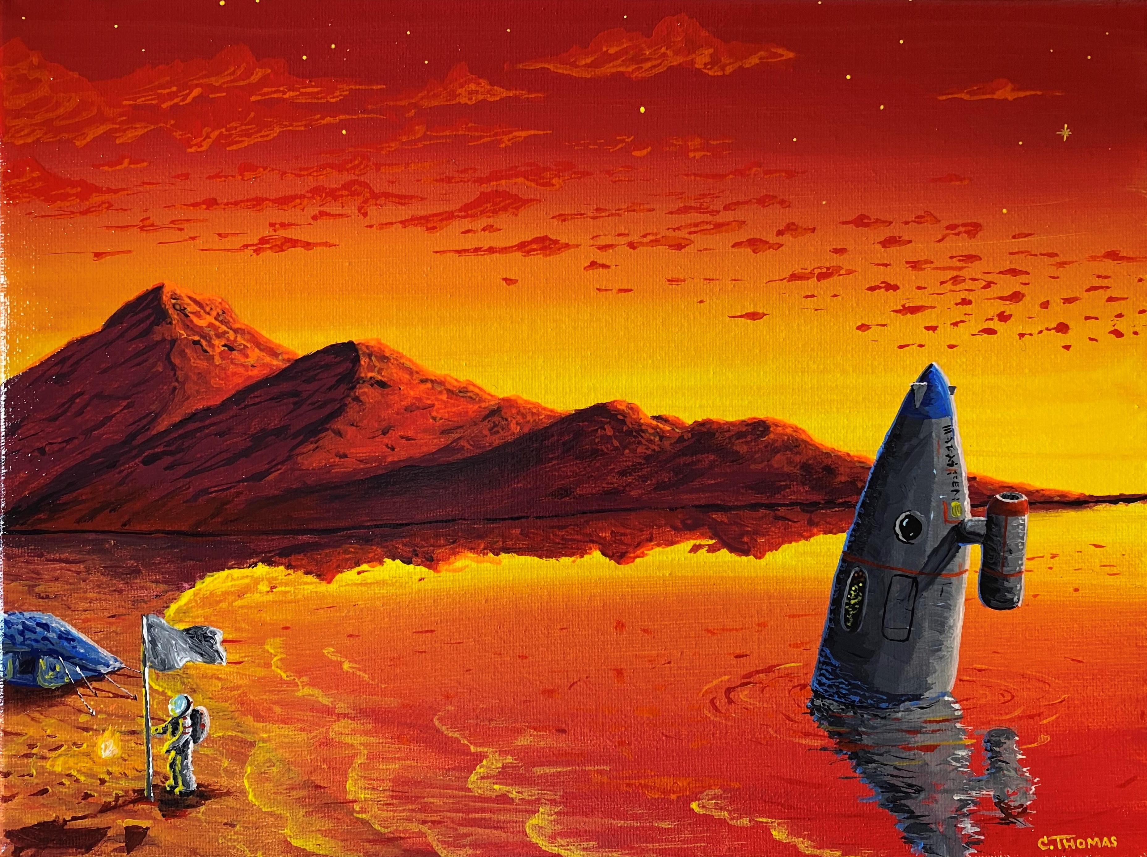 Stranded, Acrylic 9x12", 2021artchristhomas (48)in ART 🌻🎨📝 • 5 years ago A piece using some of my favorite colors. Where will you end up? #acrylic #painting #art #artist #chrisonthischarizard #space #astronaut