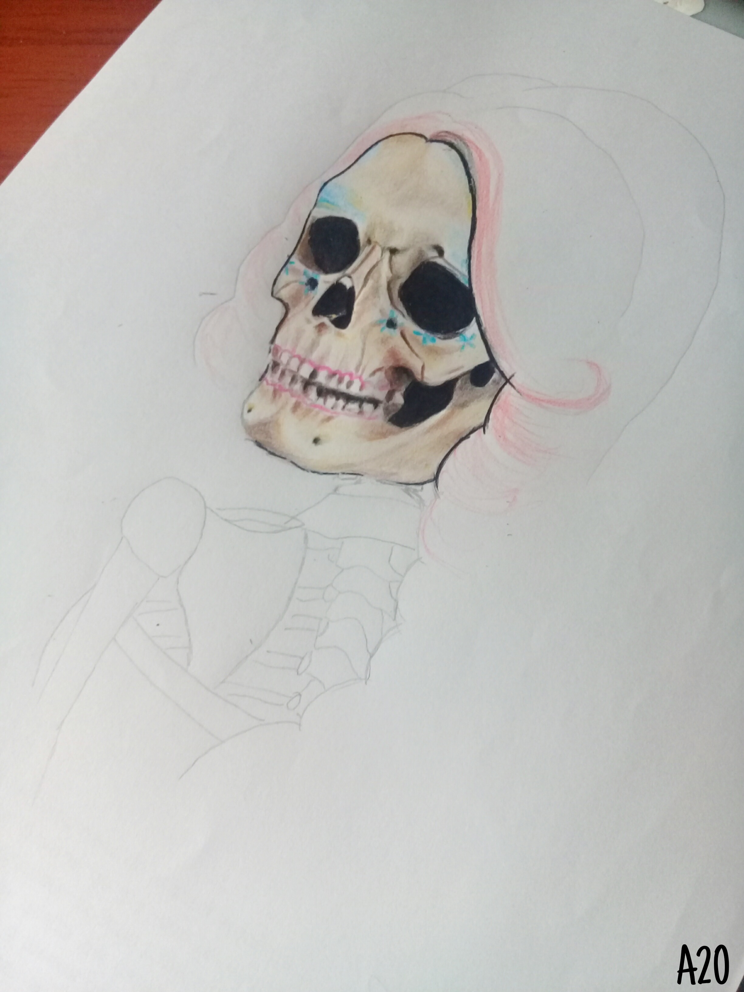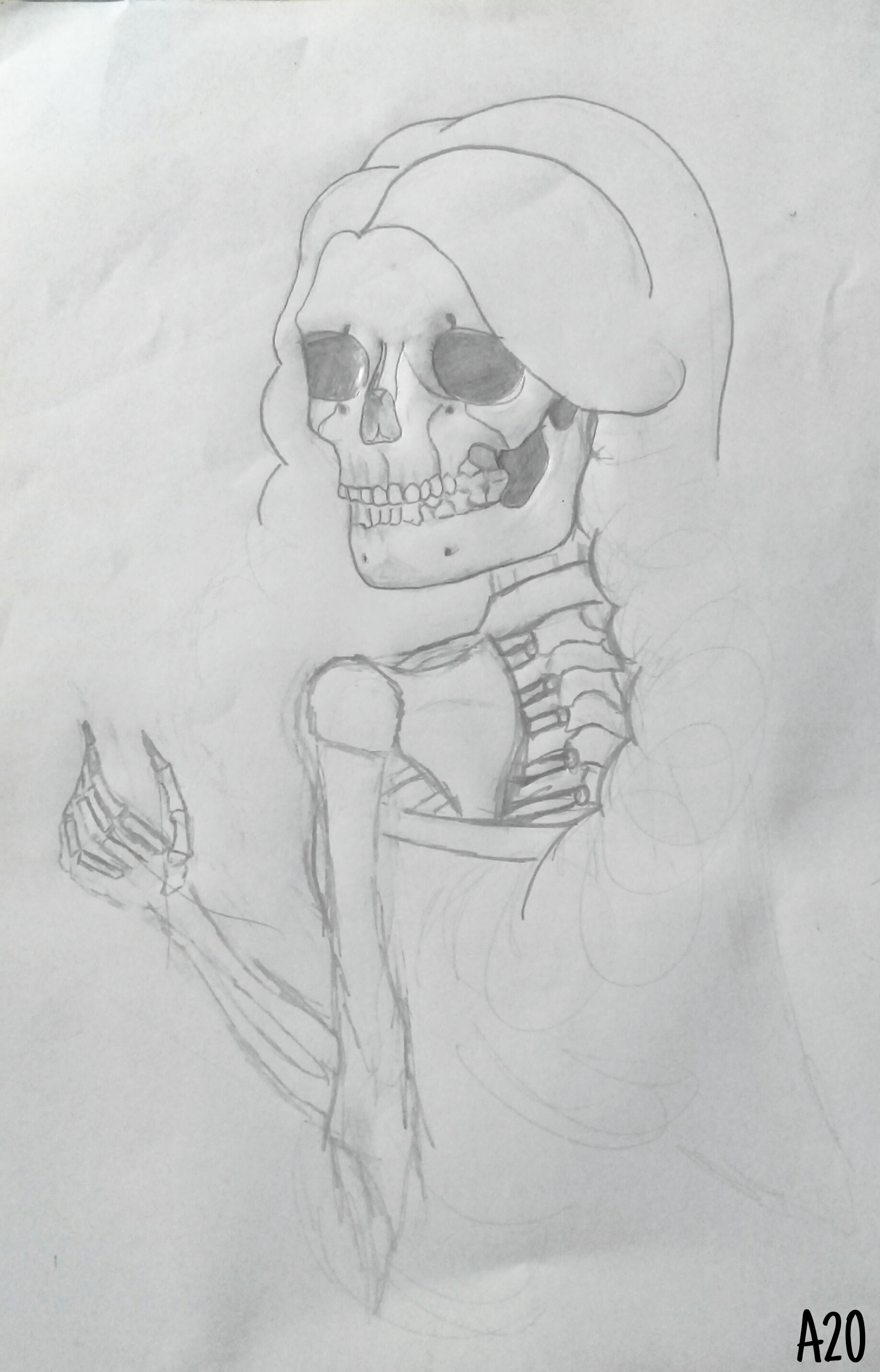 Pasa que no soy una "dibujante experimentada" ni nada. Me gusta hacerlo cuando tengo tiempo libre, pero aún tengo problemas para dibujar las manos de manera decente, sumemos que no solo eran manos sino que además eran manos de esqueleto. Con tanto detalle no pude señores jaj así que se las debo 😂😄
