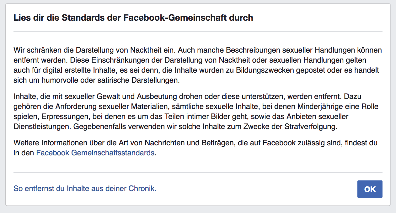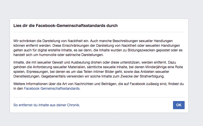 Würden die das bei Facebook nicht ernst meinen, wäre es eine witzige Geschichte! So sind diese Puritaner echte Spaßbremsen!