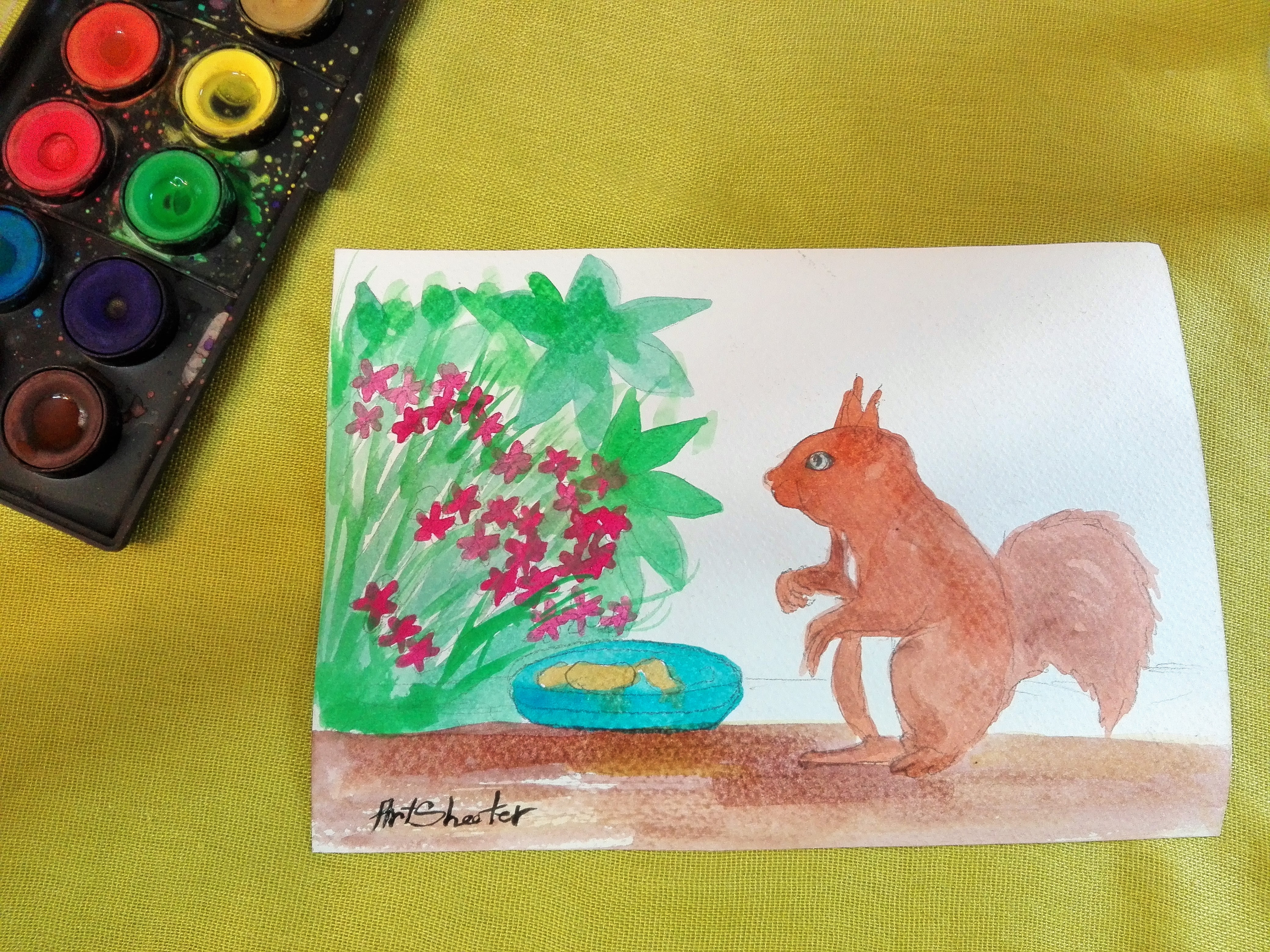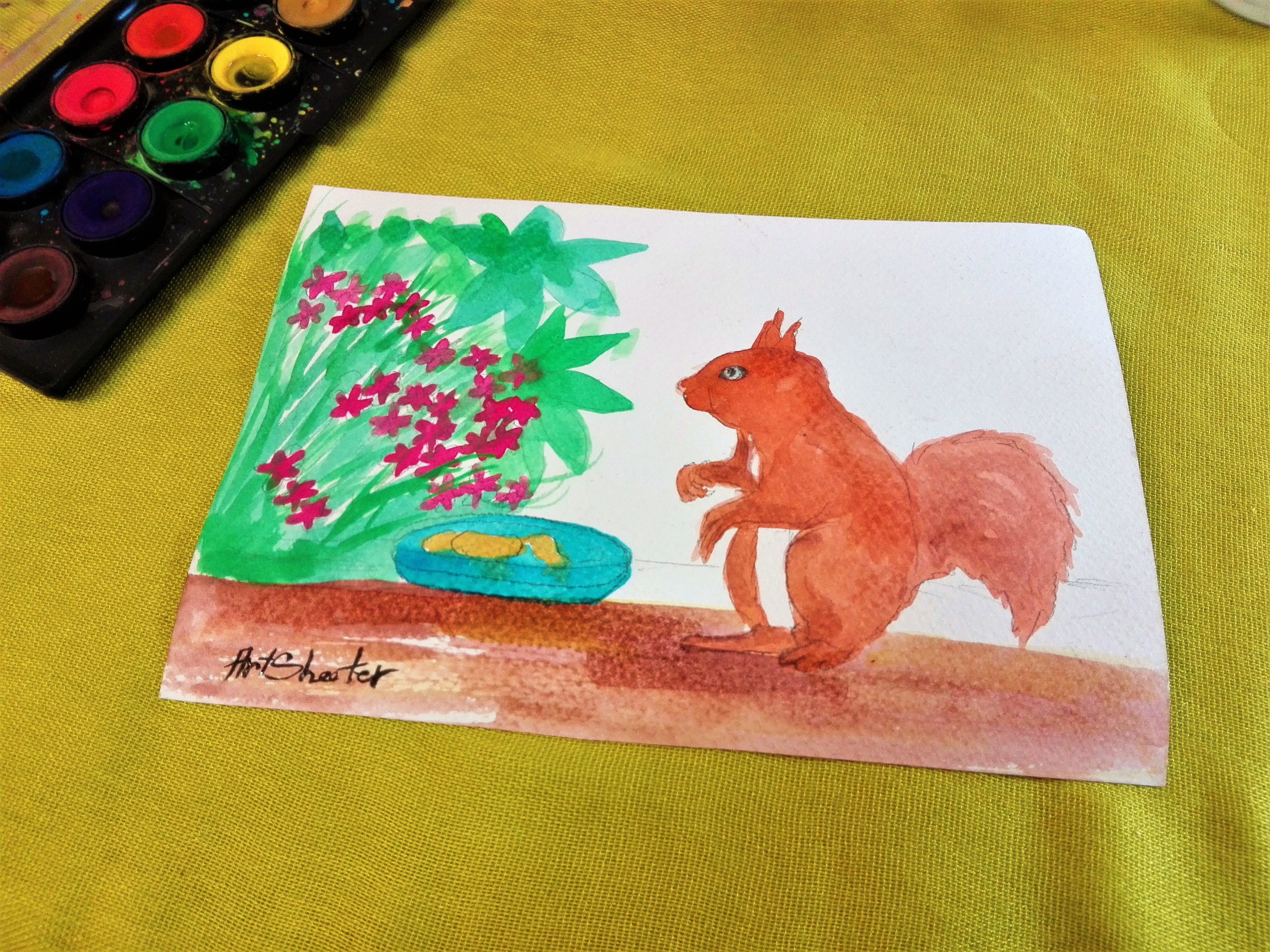 Learn How to draw the Animal Drawing with water colors.Here i am going to draw the squarell art which is very good looking and nice animal having a small size with thick tail.