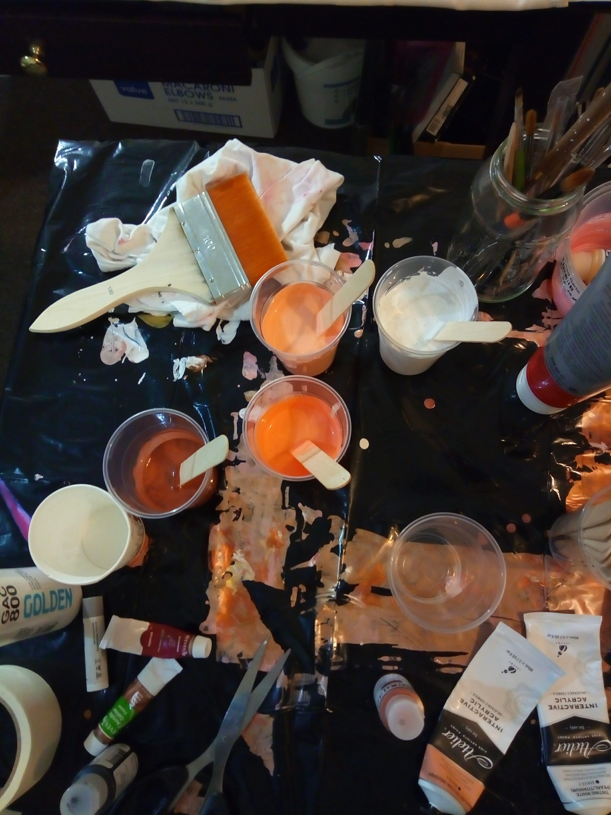 요 한작품 성공하느라 뿌린 물감이 엄청나기 때문에 처음 시작을 하시는 분이시라면 가급적 싼 재료로 작은 캔버스 보드에 연습을 하고 접근하시는것을 추천합니다. 뿌려서 공간을 채우는 아트이기 때문에 크기가 클수록 난이로가 높아집니다.