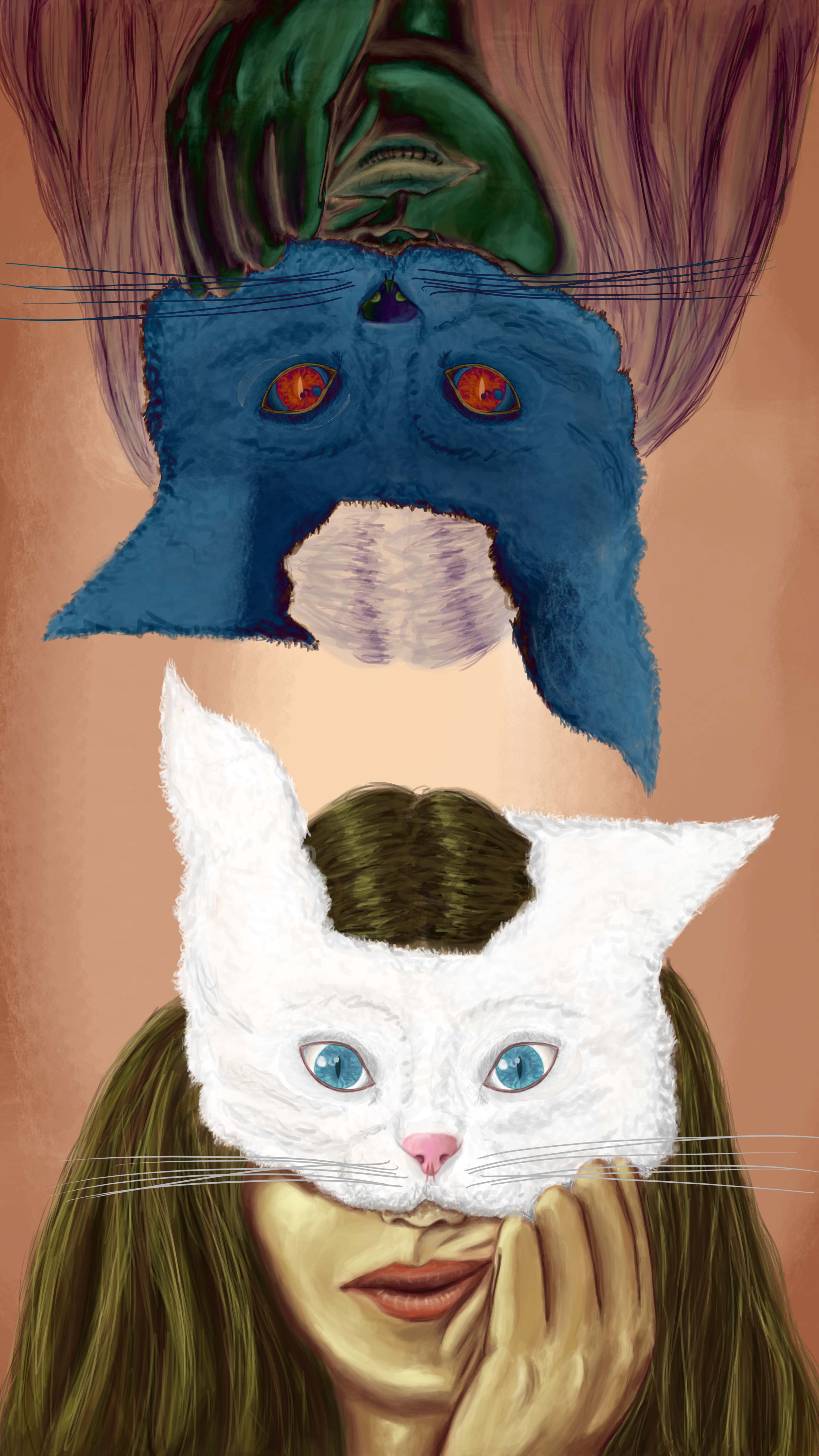 This time I bring you an illustration I did some time ago, I wanted to achieve a kind of wild mix, between a girl and a cat, so I came up with the idea of a kind of mask but it really fused with the body of the girl, so that this was what came out: