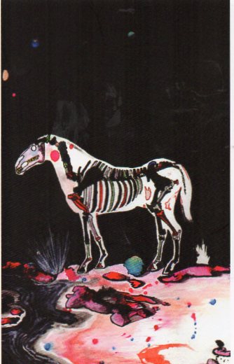 Horse posing on the lake, from the point of view of a Japanese woman with severe paranoid schizophrenia.
