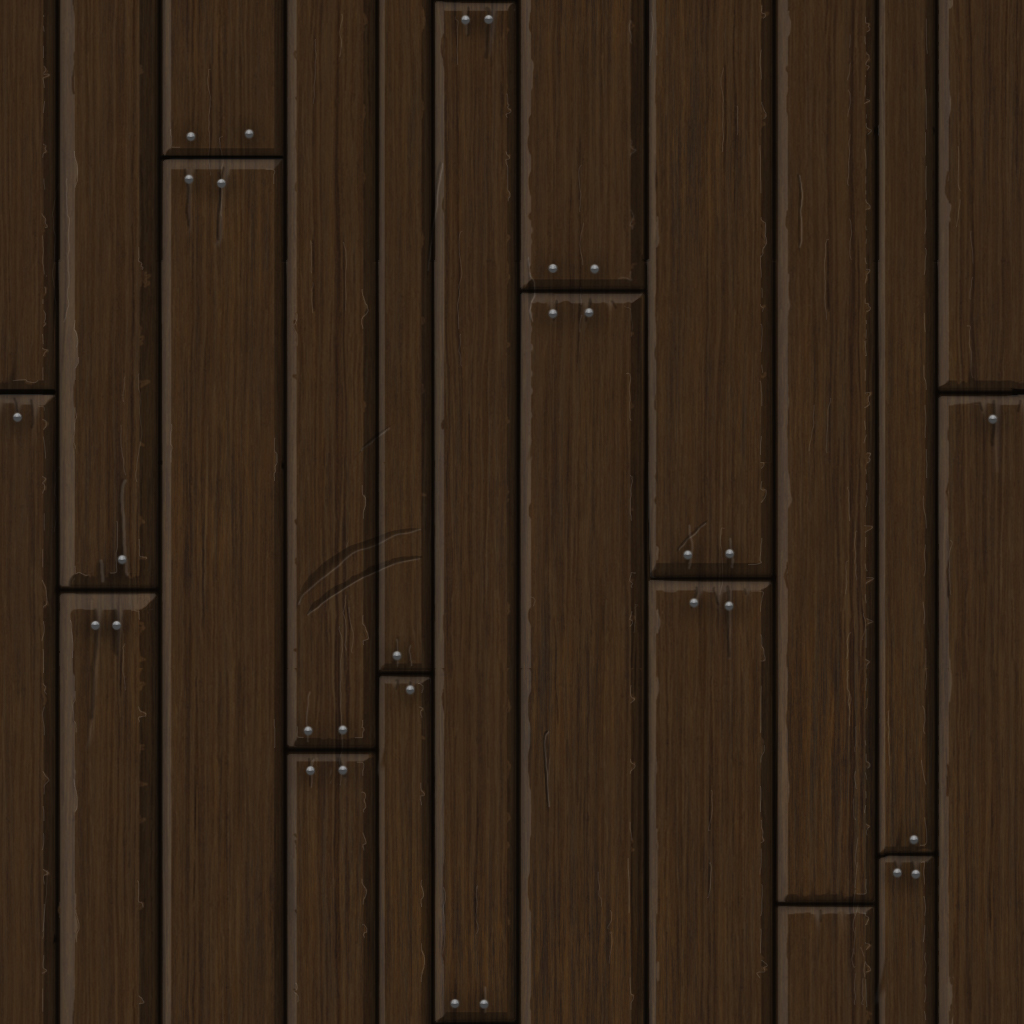 Finally I outlined the floorboards. I made sure to add variation to the length and width of each piece. I then added the shadow and highlight, finishing with a tiny edge highlight and splitting the wood ends.