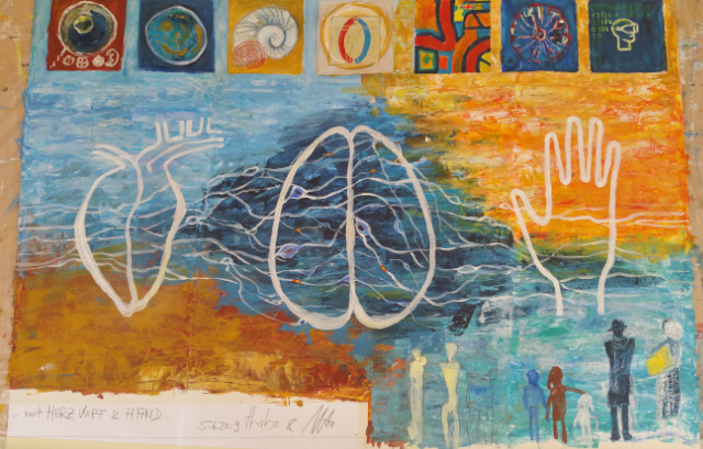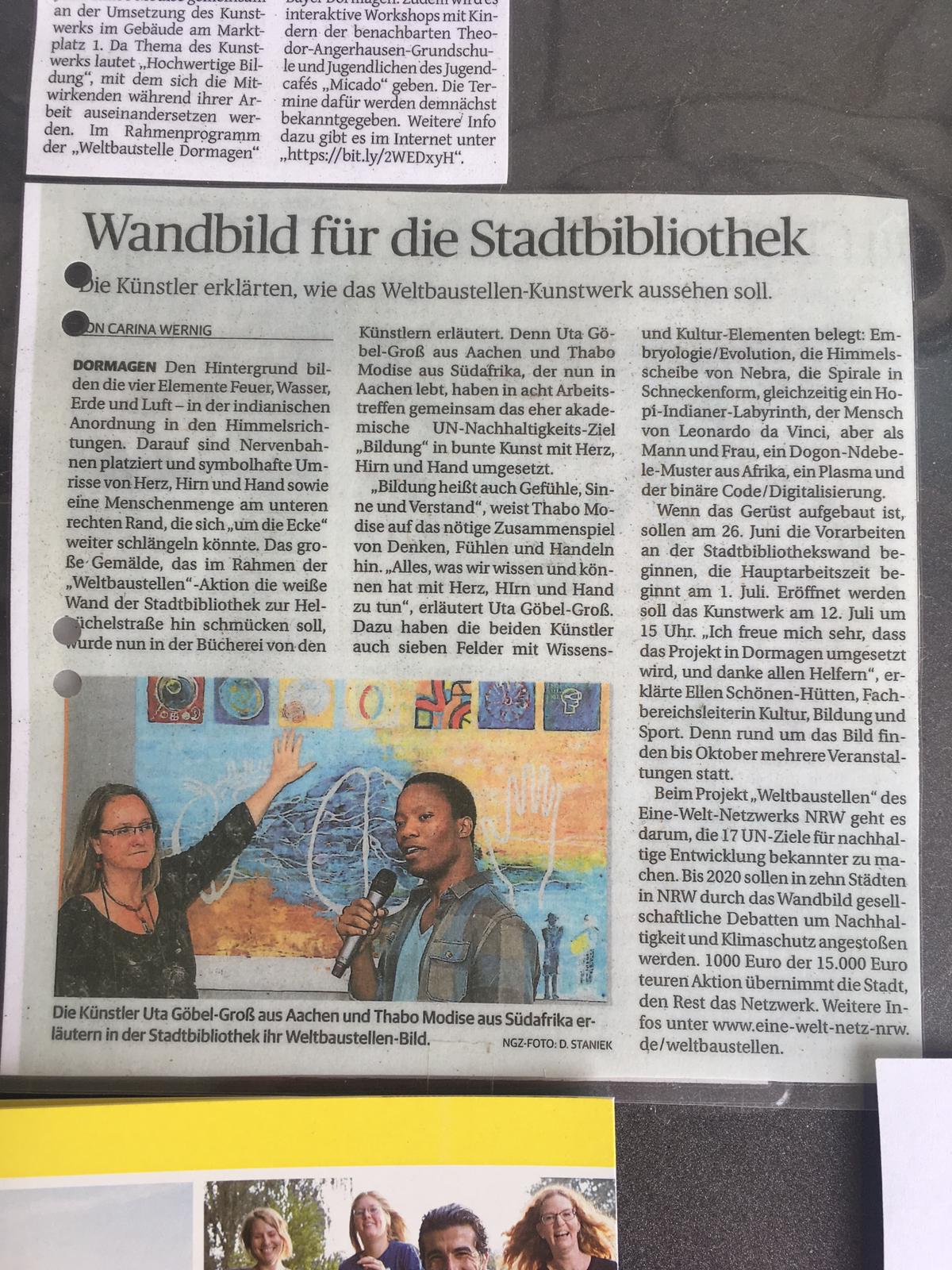 I woke up, it was early in the morning and the meeting in Dormagen was at 11:30. I was feeling nervous already, even though I had convinced myself that it did not matter whether I get the project or not. My body was giving me away, after all I've imagined myself working on it so many times already. Uta was picking me up at 10:00 from my apartment so I was waiting anxiously. The doorbell rang as usual I was startled, because our apartment has the most annoying doorbell in the history of doorbells. I ran downstairs, exited through the building's main door and quickly hopped into Uta's car. We drove straight to Dormagen and within an hour we arrived. We were half an hour early so we had time to relax and settle in. 11:30 hits, the moment we have all been waiting for. We walked to the meeting room as the board members were all gathering together. We introduced ourselves and proceeded with the meeting. Uta and I had prepared our resumes to present to the board. My fear was that my portfolio was rather small in comparison to Uta's. Like any other meeting questions were asked and questions were answered in the end the board was happy to let us work on the project together. I know that I was lucky to get this project but the irony of it is that they were also lucky to have me, because otherwise it would have required more money and effort to fly an artist into the country so I was a blessing in disguise for them too, talk about being in the right place at the right time. So it was official, the project was ours, inside I was really ecstatic but like always I just kept my cool as if it was no big deal. This was in early March this year and only in the beginning of May would we start working working on the draft for the mural. The project was part of the SDG's and the topic is high quality education.