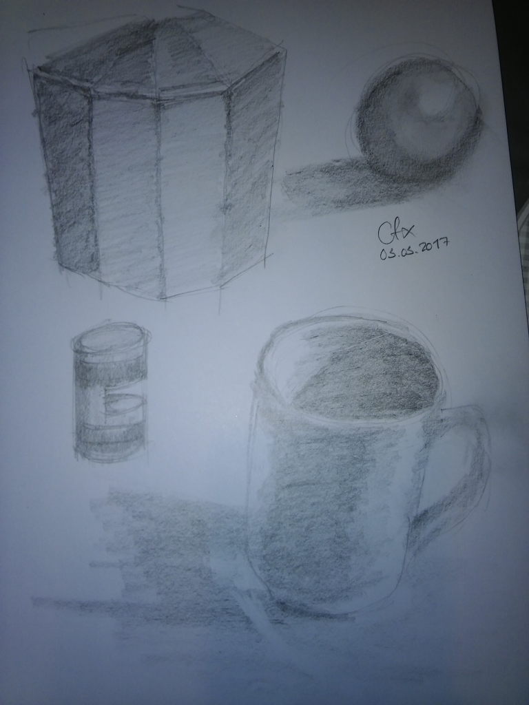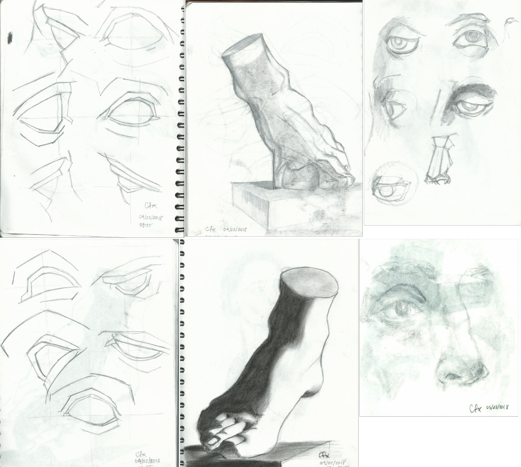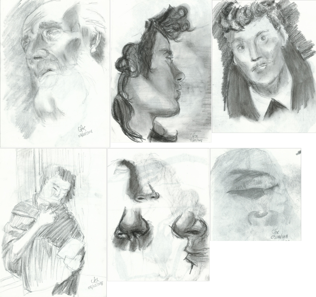 I draw almost daily, portraits, figure and object. I was baffled, what I though I could draw and the results after a month or so where so far away from each other, my bad drawings killed my motivation and I ended quitting. Here are some of my drawing of the period.