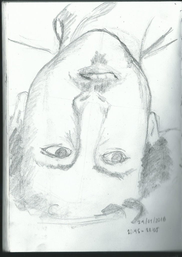 - Drawing upside down to reinforce the ability of seeing and not thinking, just like in the Betty Edwards'. This way can we improve our abilities of copying.