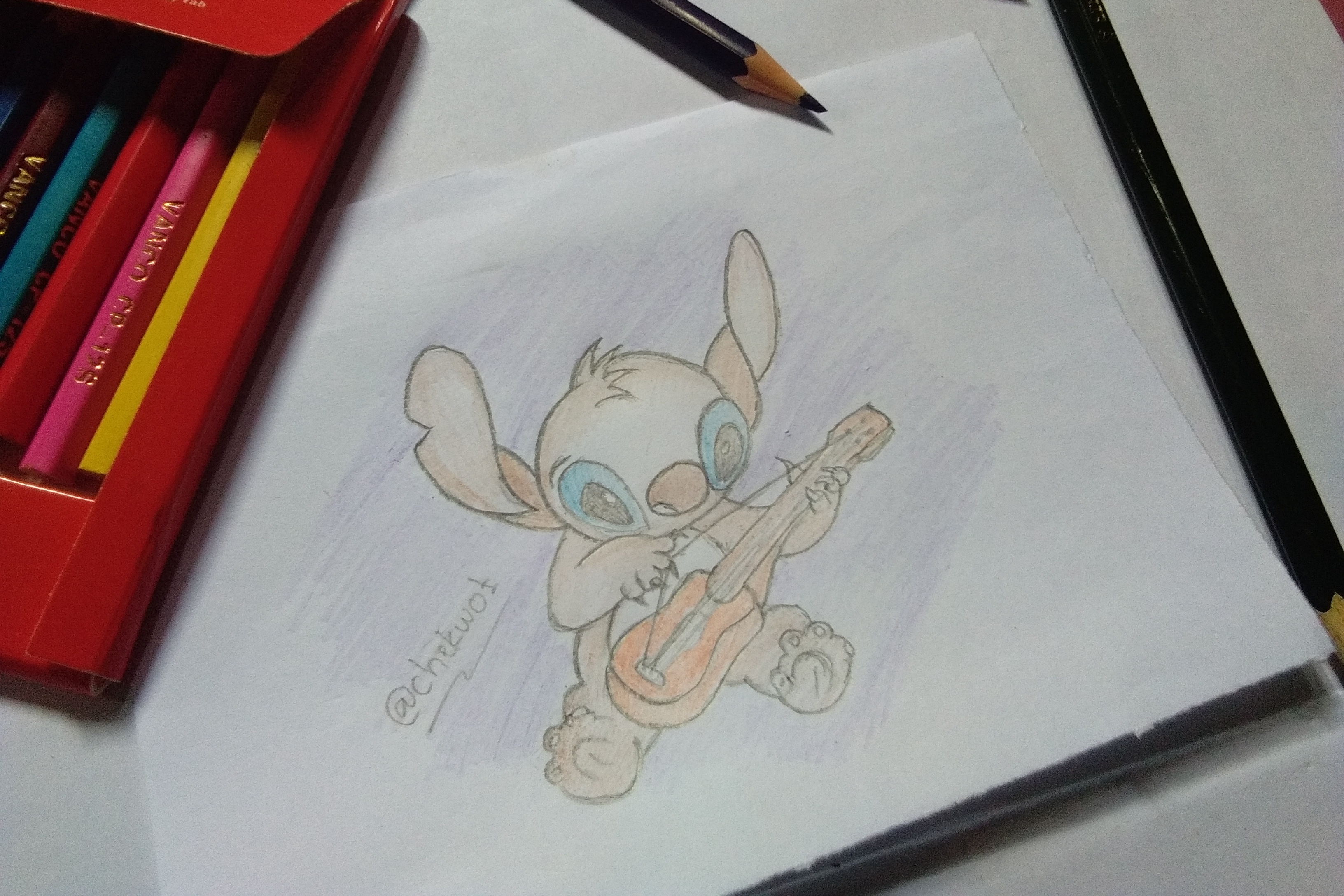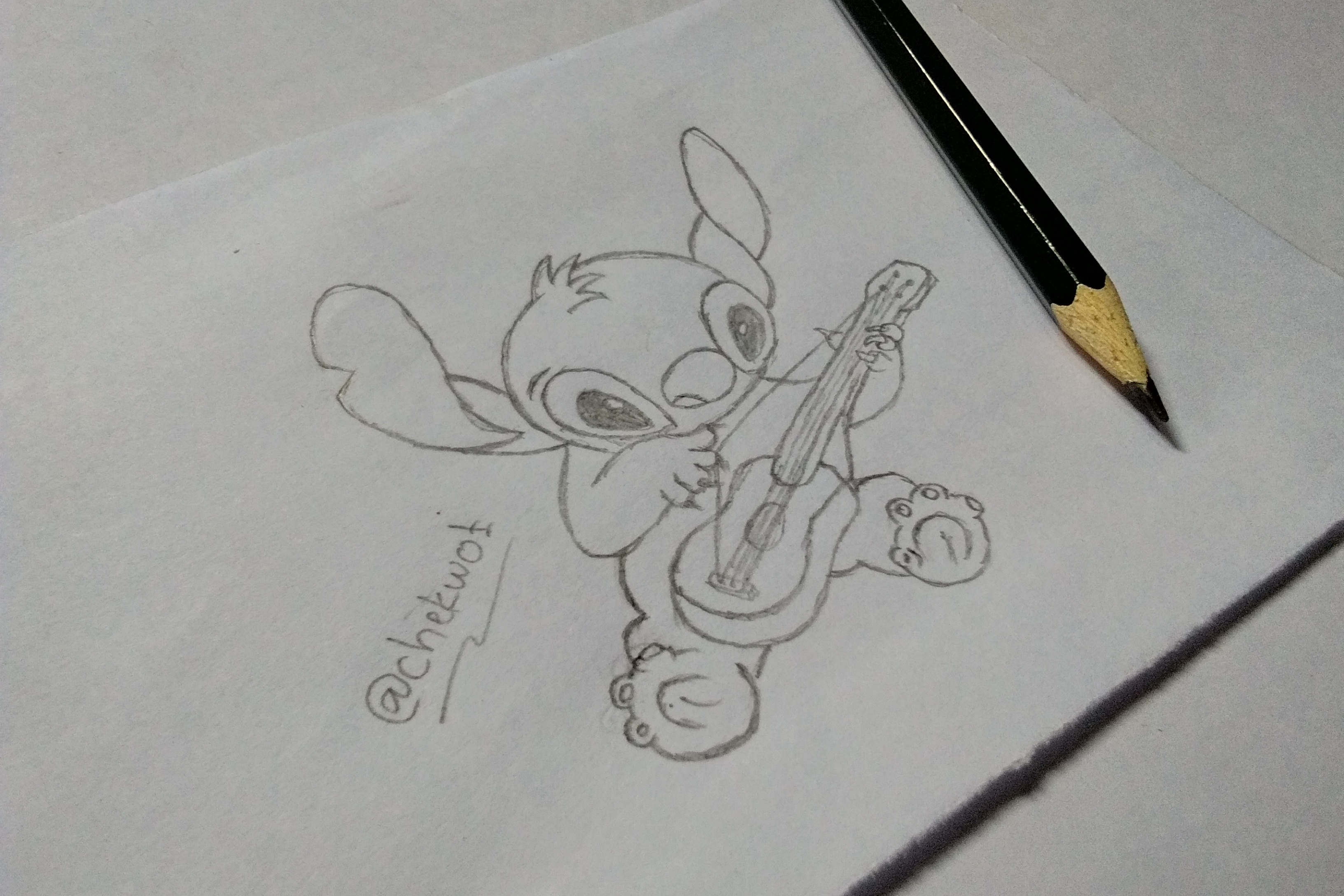 Initially I saw my friend playing a song with his guitar, then I thought in my mind that it would be very cool if I made it into sketch form. Looking for more unique ideas by making a mice that plays a guitar not just humans.
