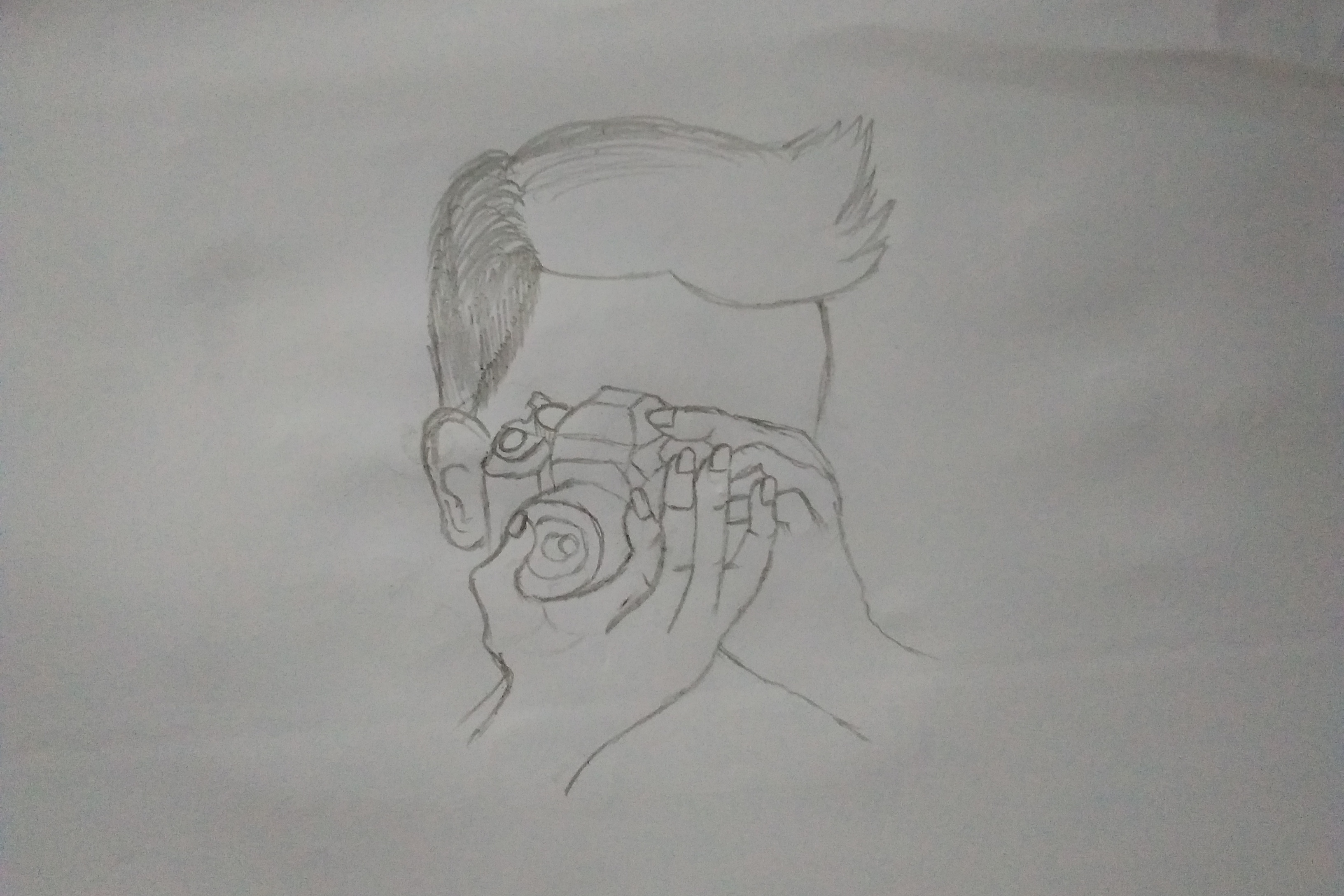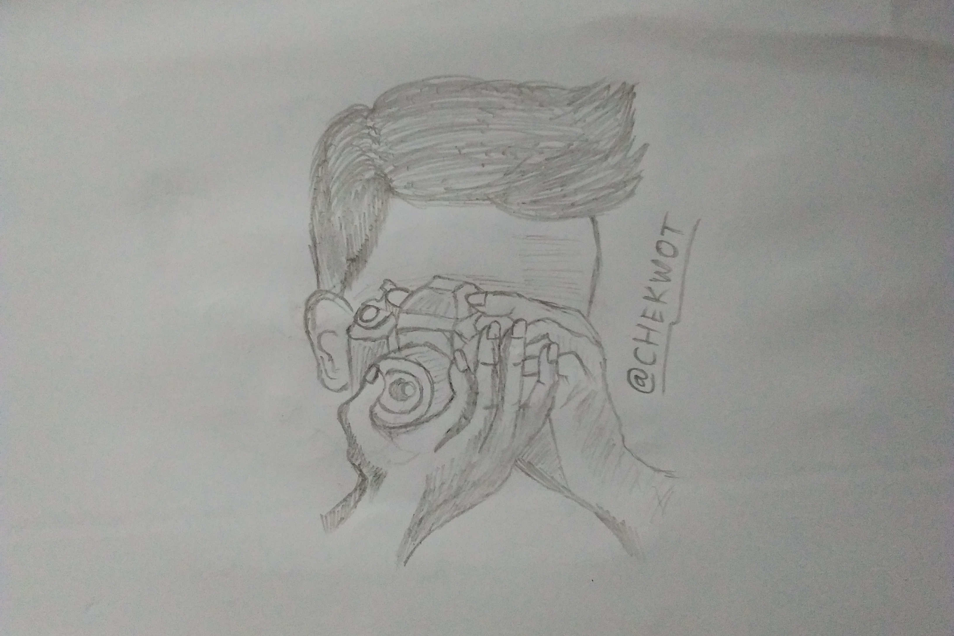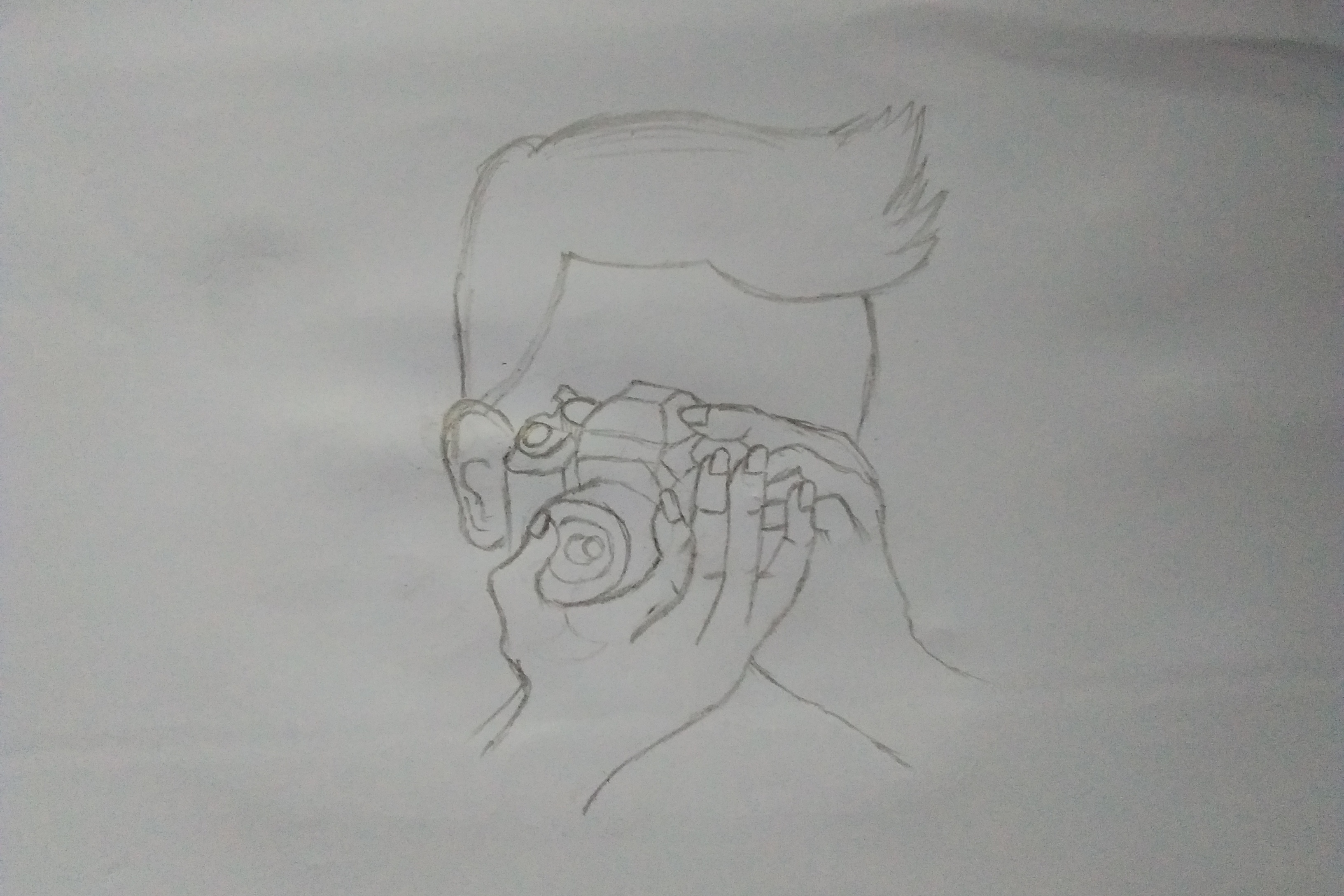 In this article I will show you a sketch of a photographer holding a camera, while also teaching you how to make it.