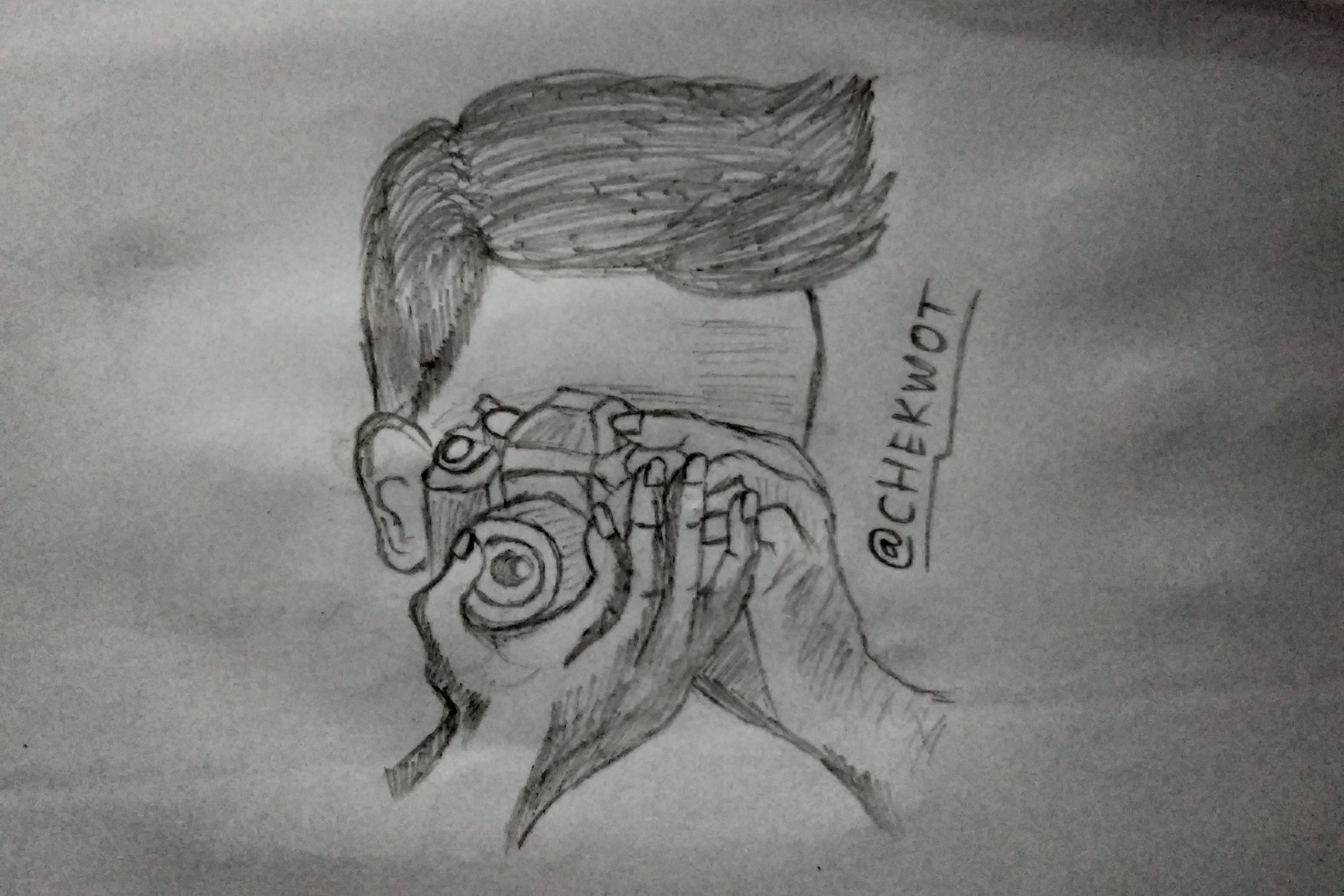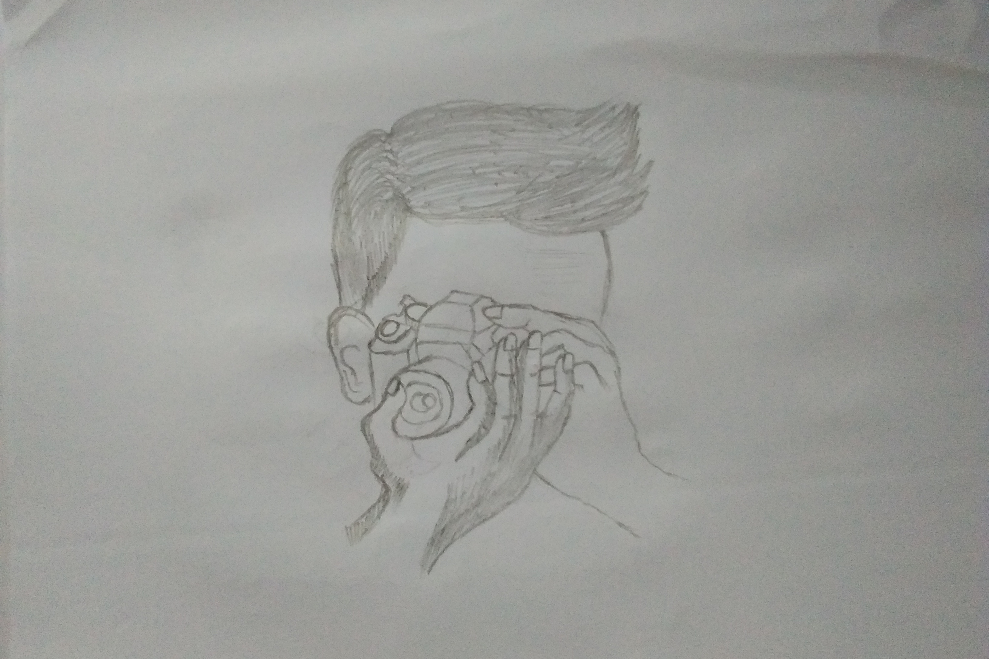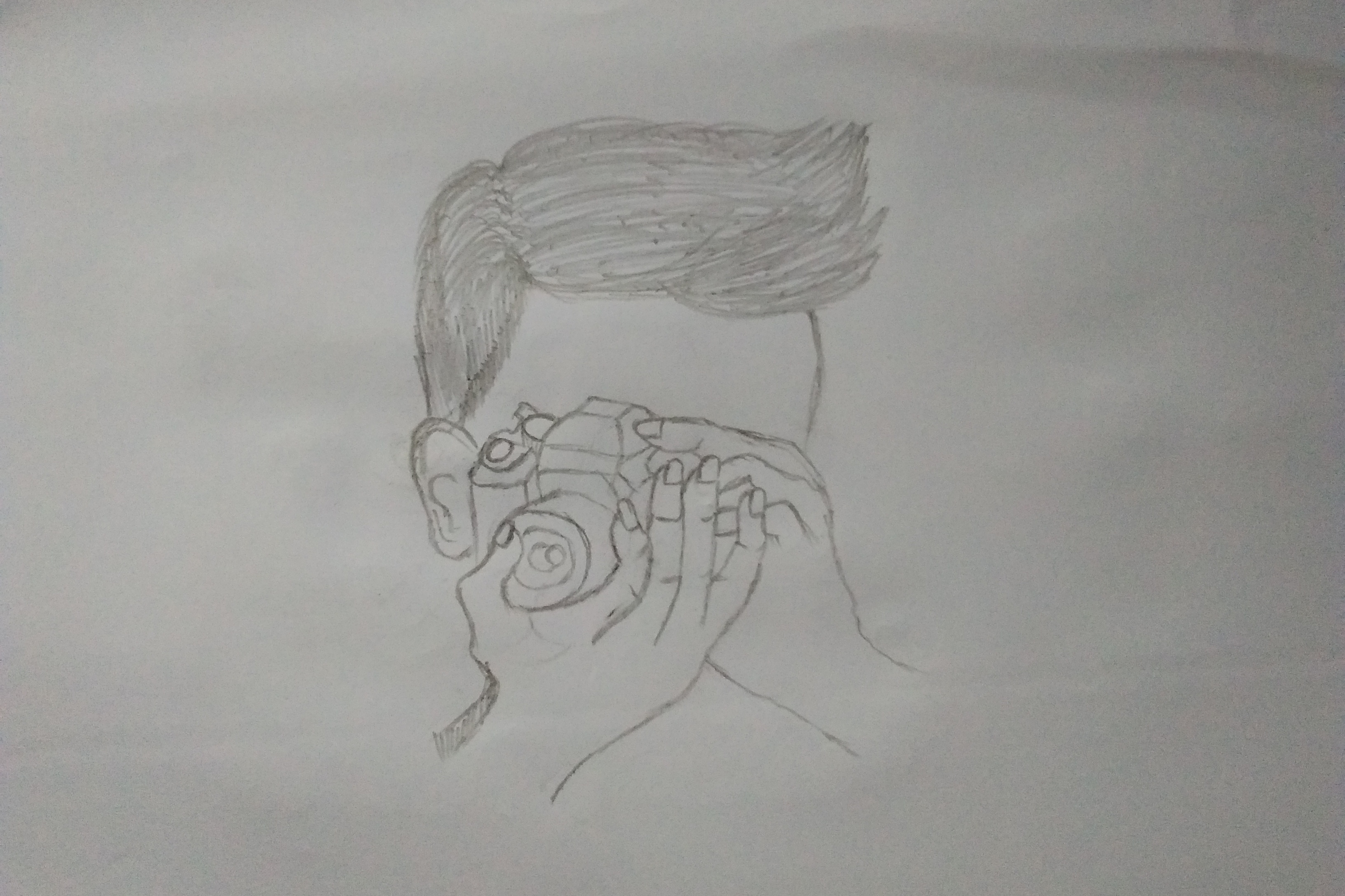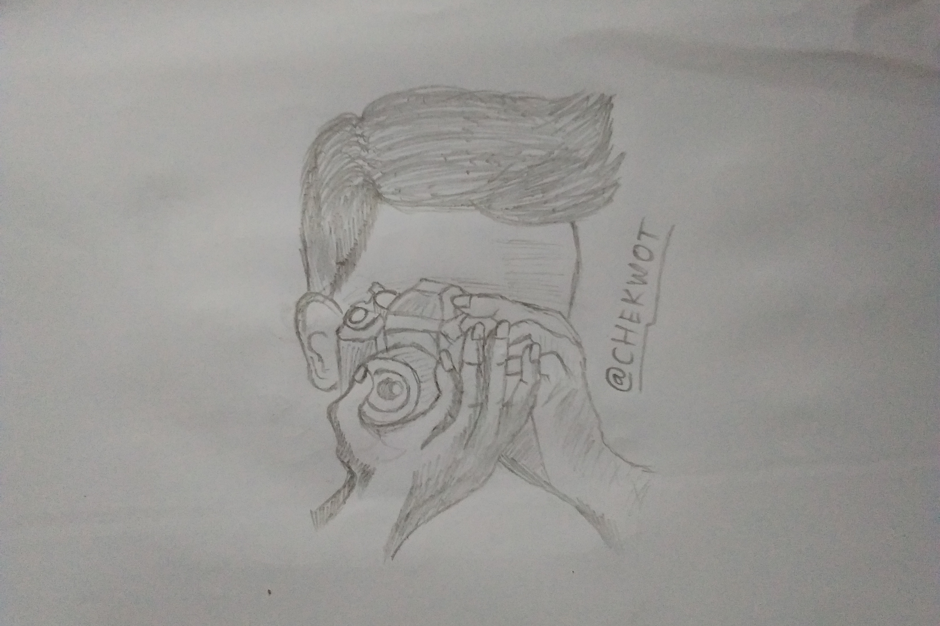 In this article I will show you a sketch of a photographer holding a camera, while also teaching you how to make it.