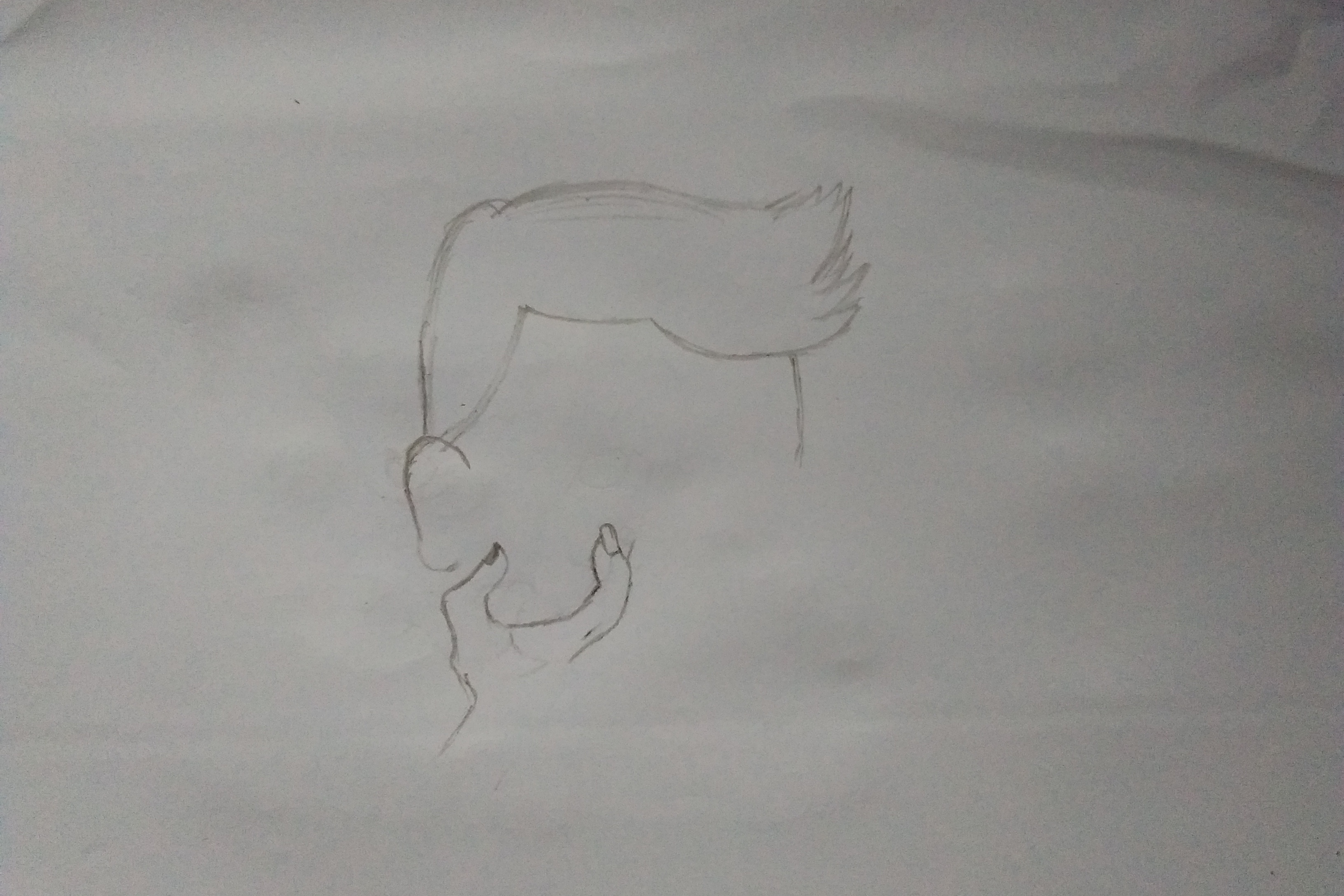 The first step I did was to draw lines to form hair and ears, more precisely the head but not the whole.