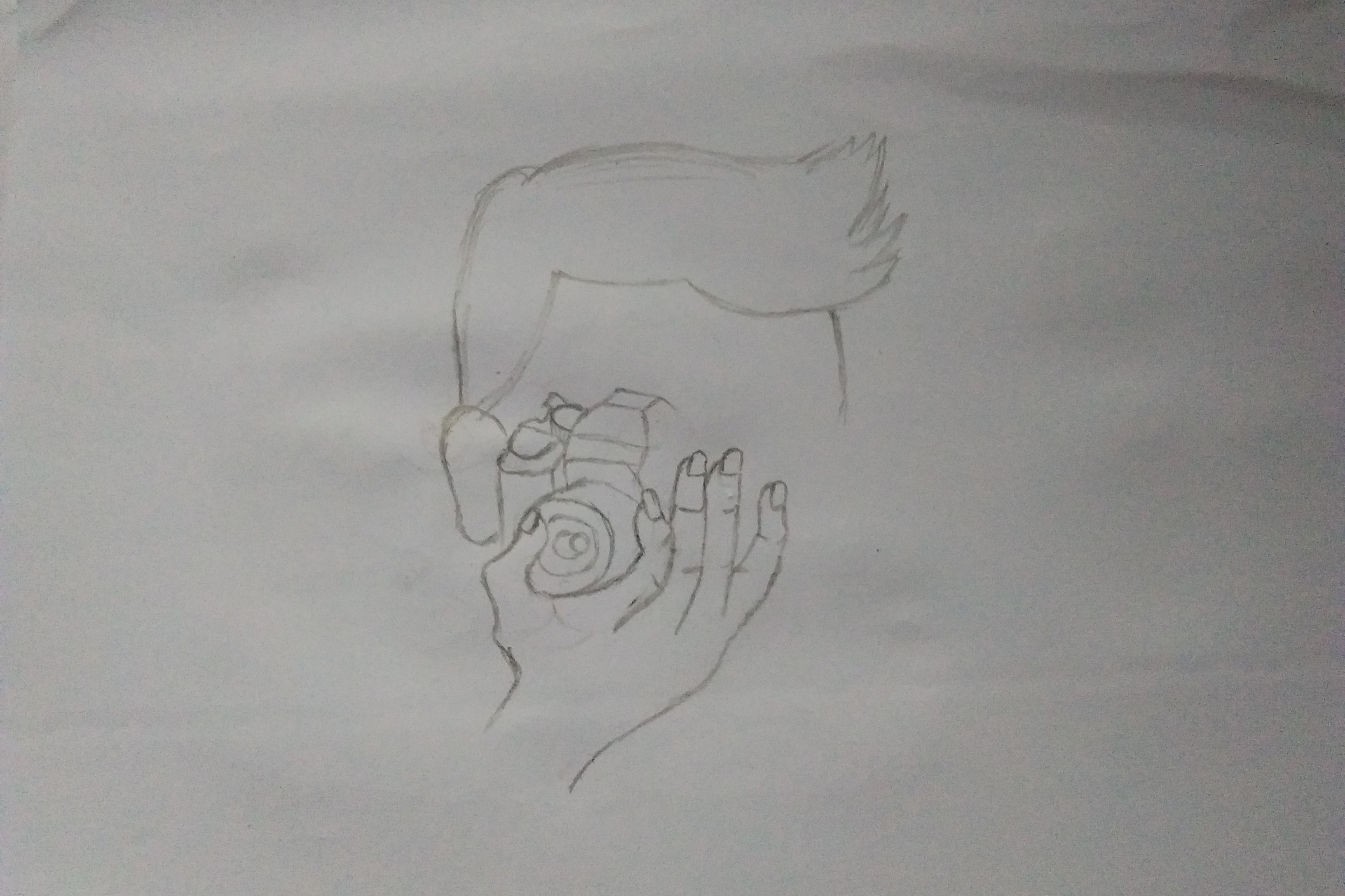 Then I drew a camera and positioned it right above the right hand that I had just drawn.
