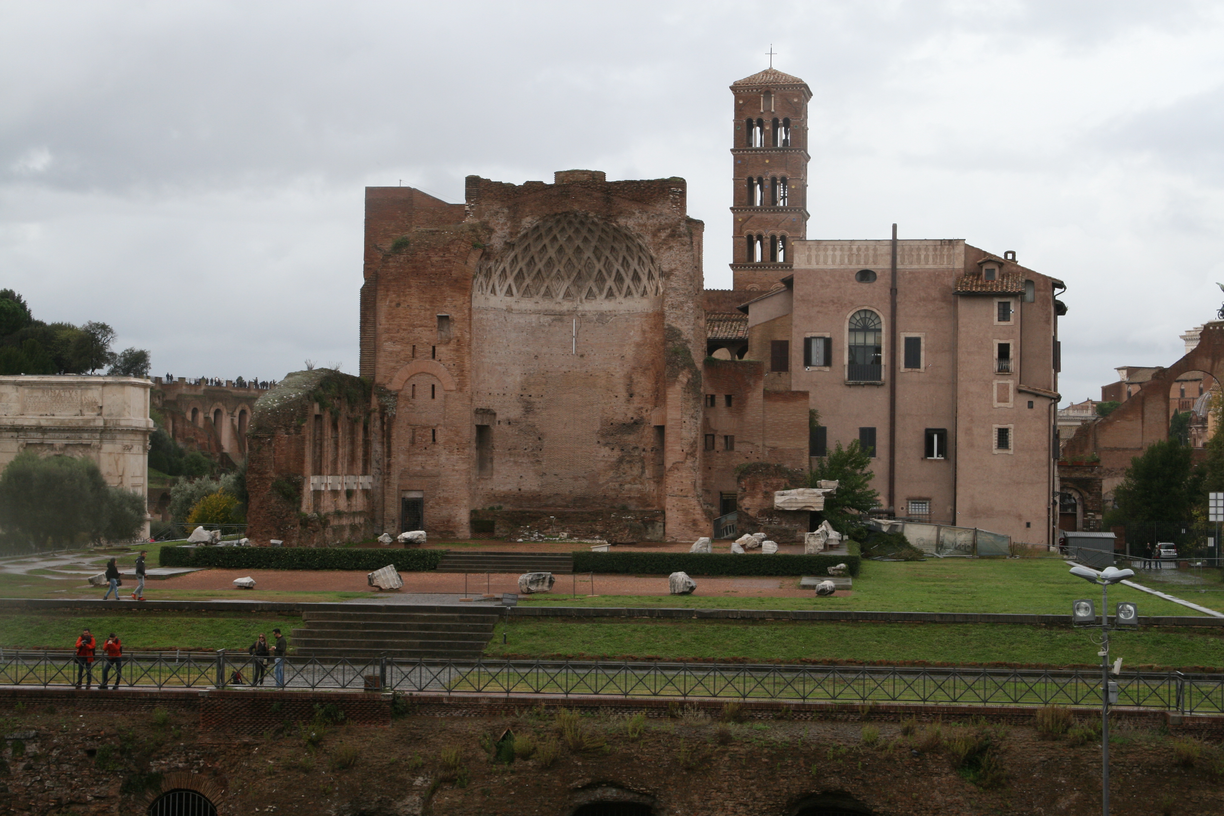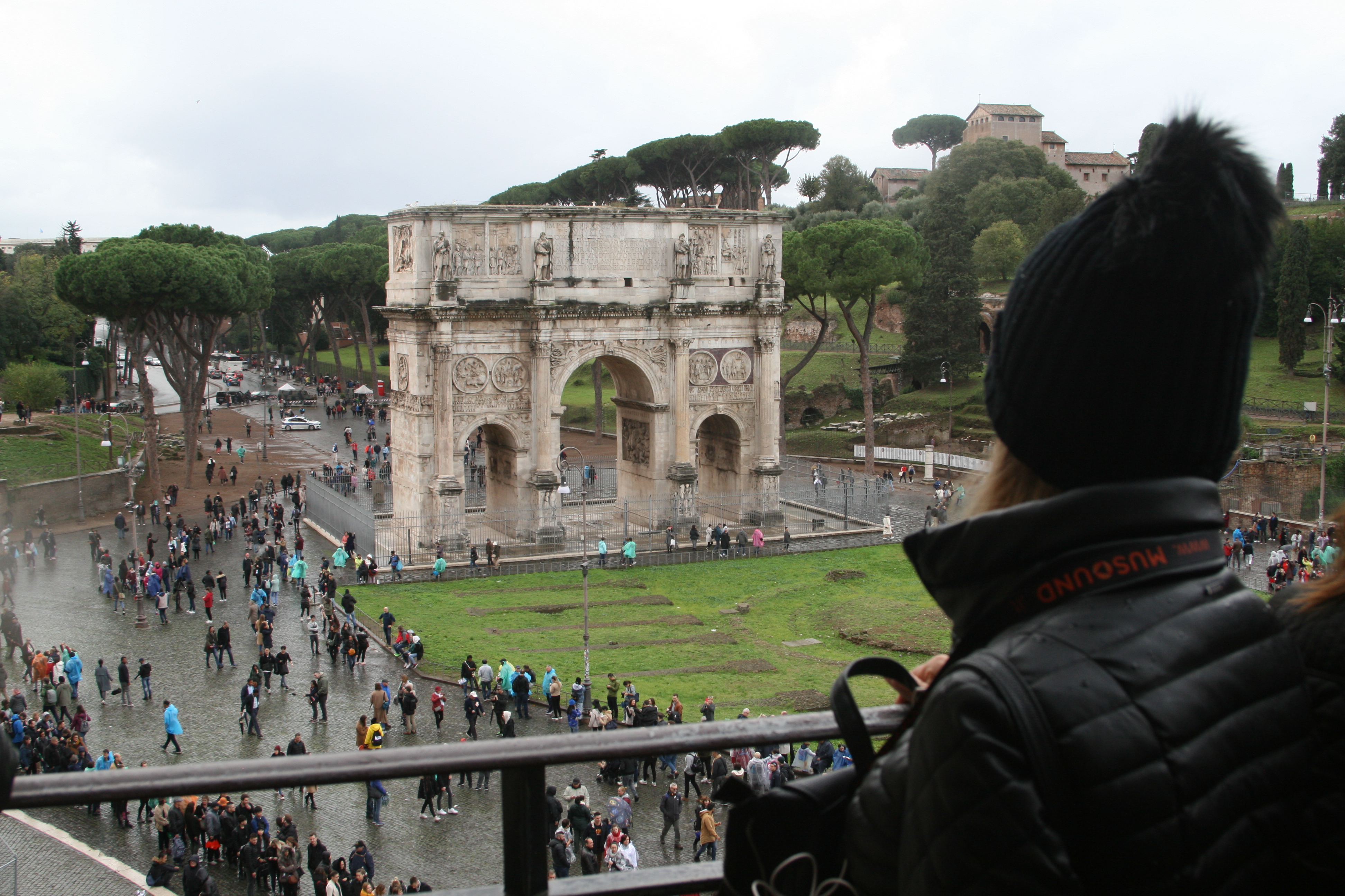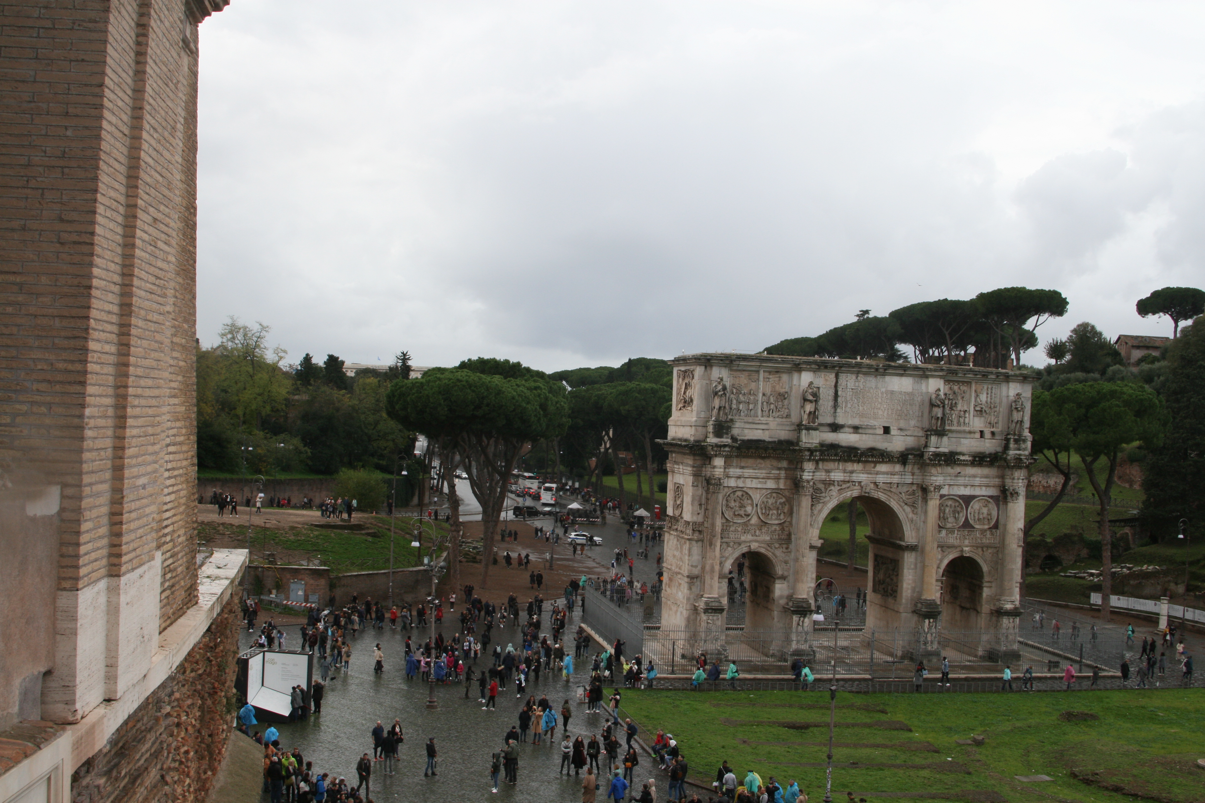 Quise apartar un poco tanta historia de sangre y dolor en lo que no fue más que una parada de la guía en su caminar y desgranar el sufrimiento que dejó ese lugar tan impresionante como el Coliseo, provechamos todos los que formábamos parte de ese grupo en tomar unas imágenes de lo que se puede ver desde los arcos del impresionante anfiteatro Flavio.