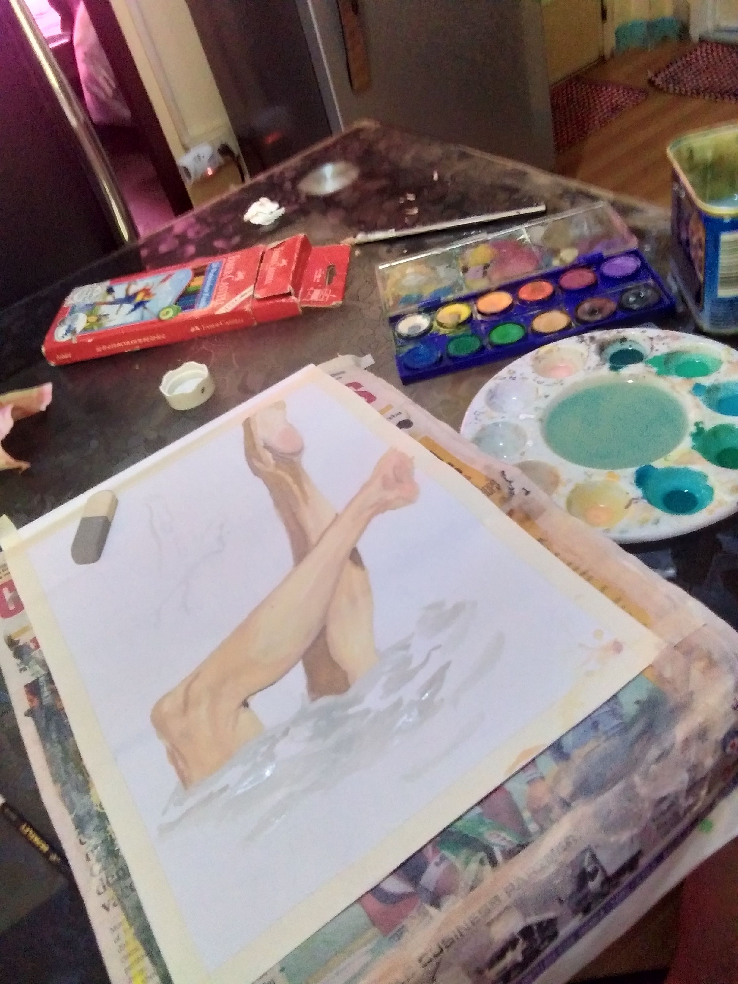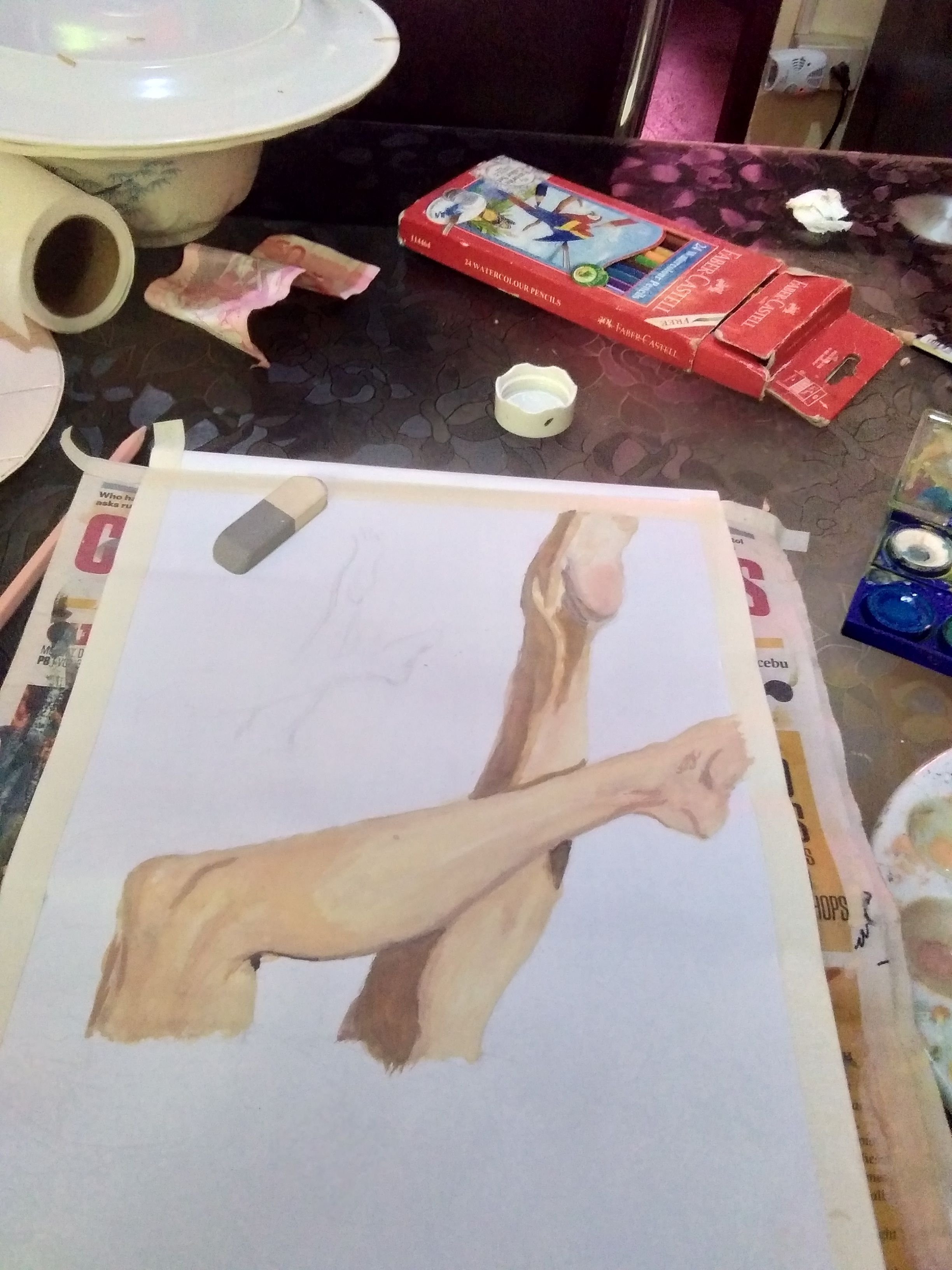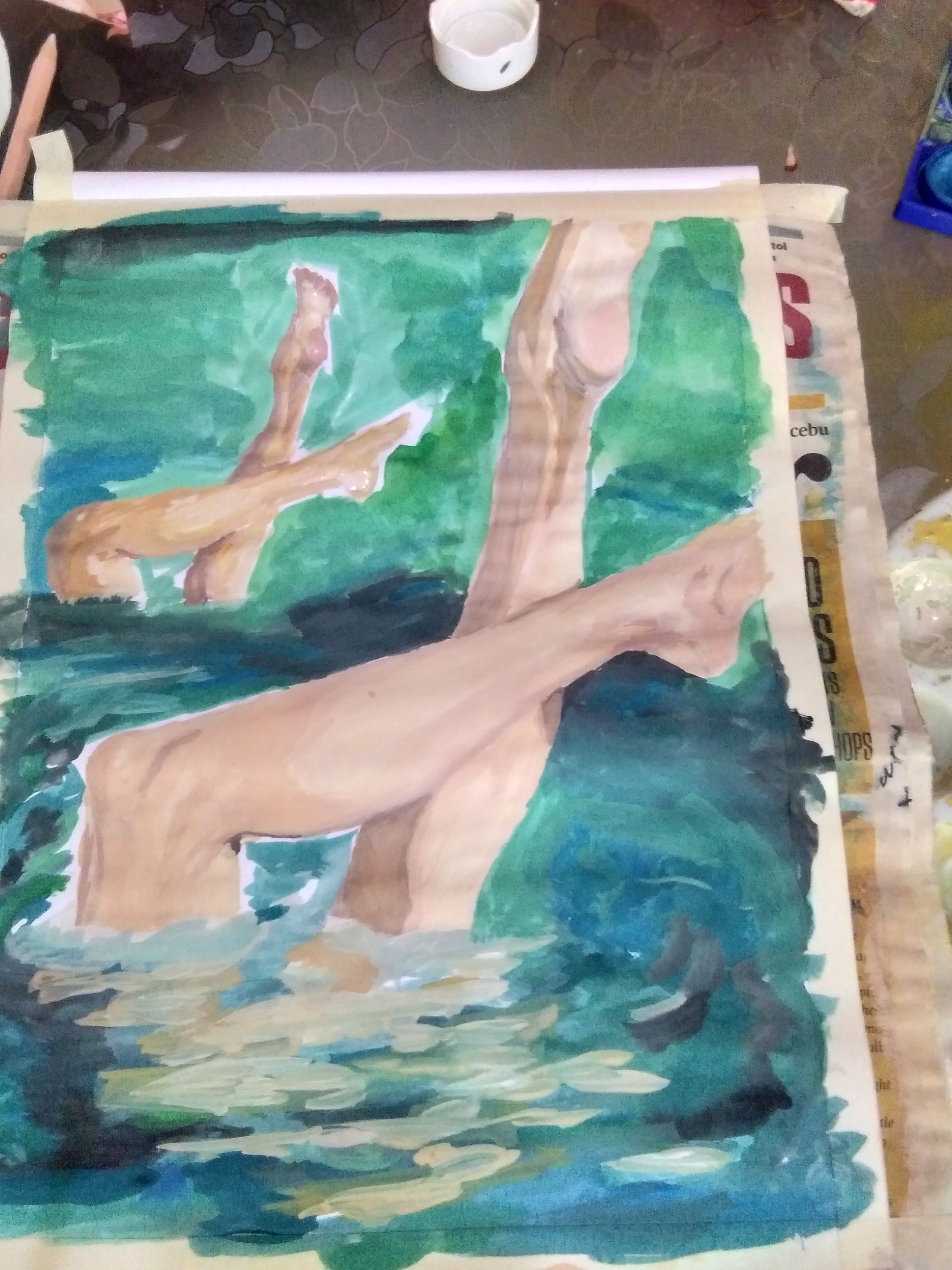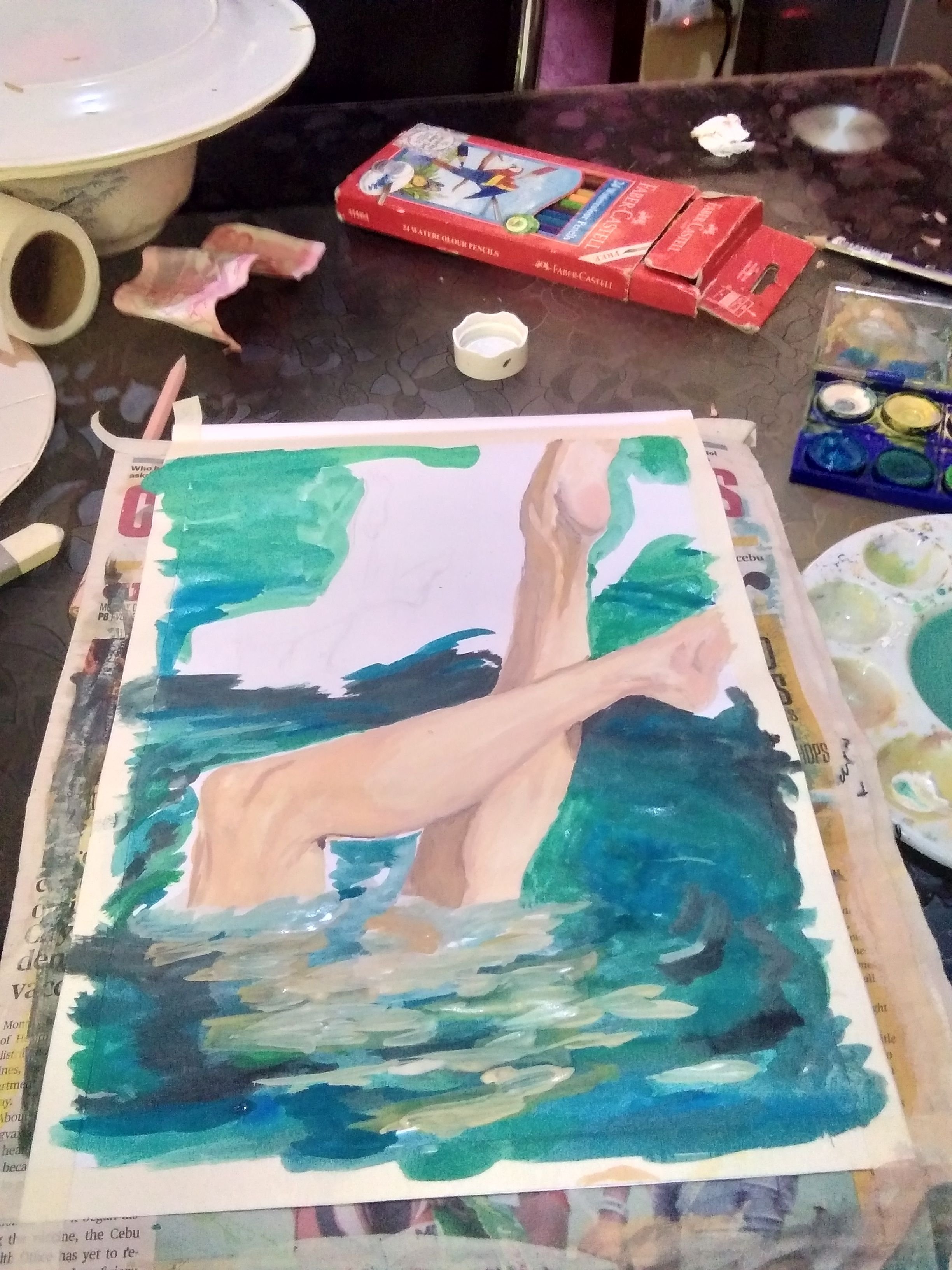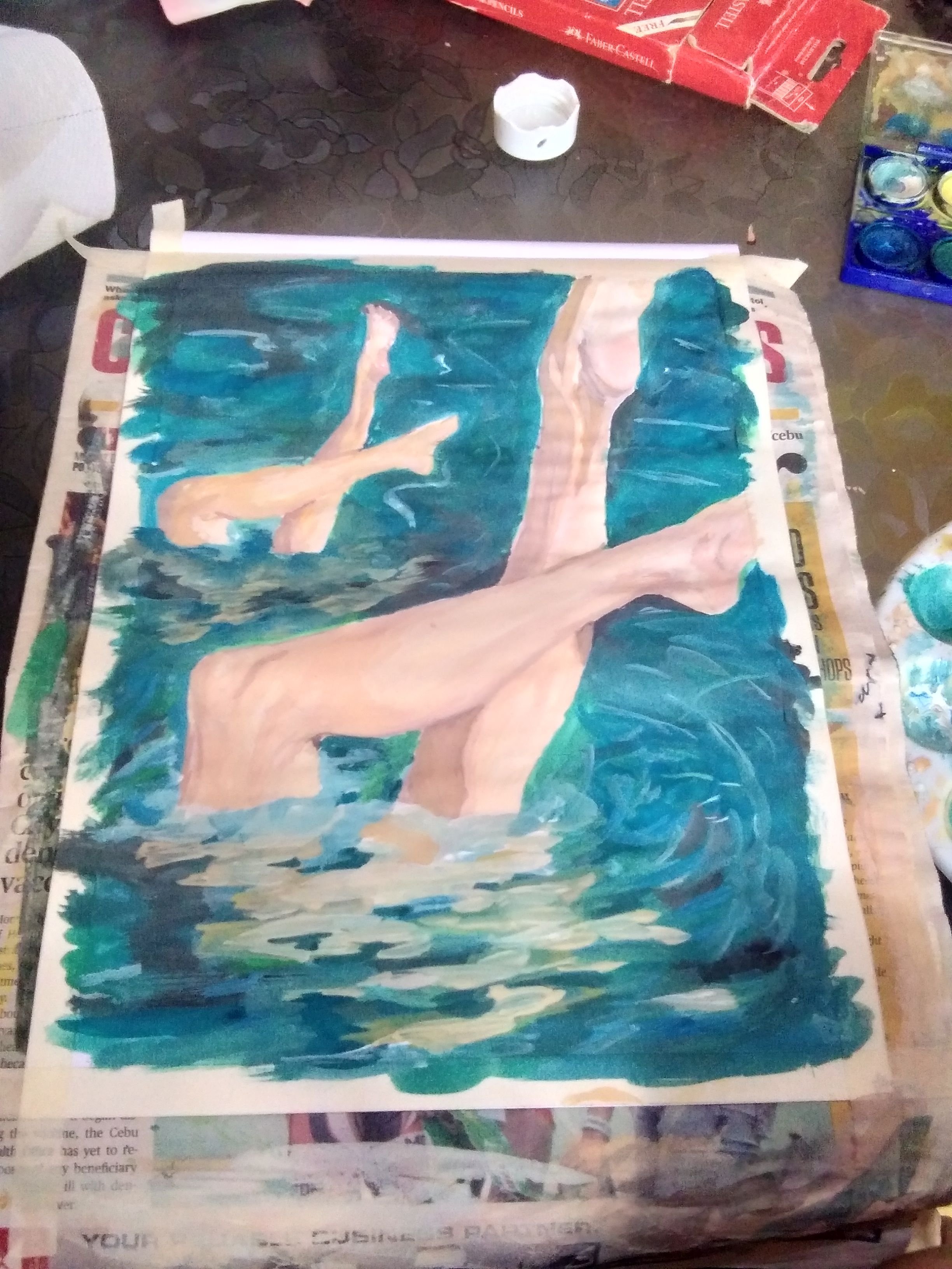 This artwork is where I challenged myself to be more creative in discovering body parts. I wasn't confident that I could make what I had imagined for this contest's theme which is lower leg. I remembered before how I love and how amazed I was watching synchronized swimming on tv. They perform really well with theirlegs and their body is under water and as its name said they were all synchronized, they move or dance at the time under water.