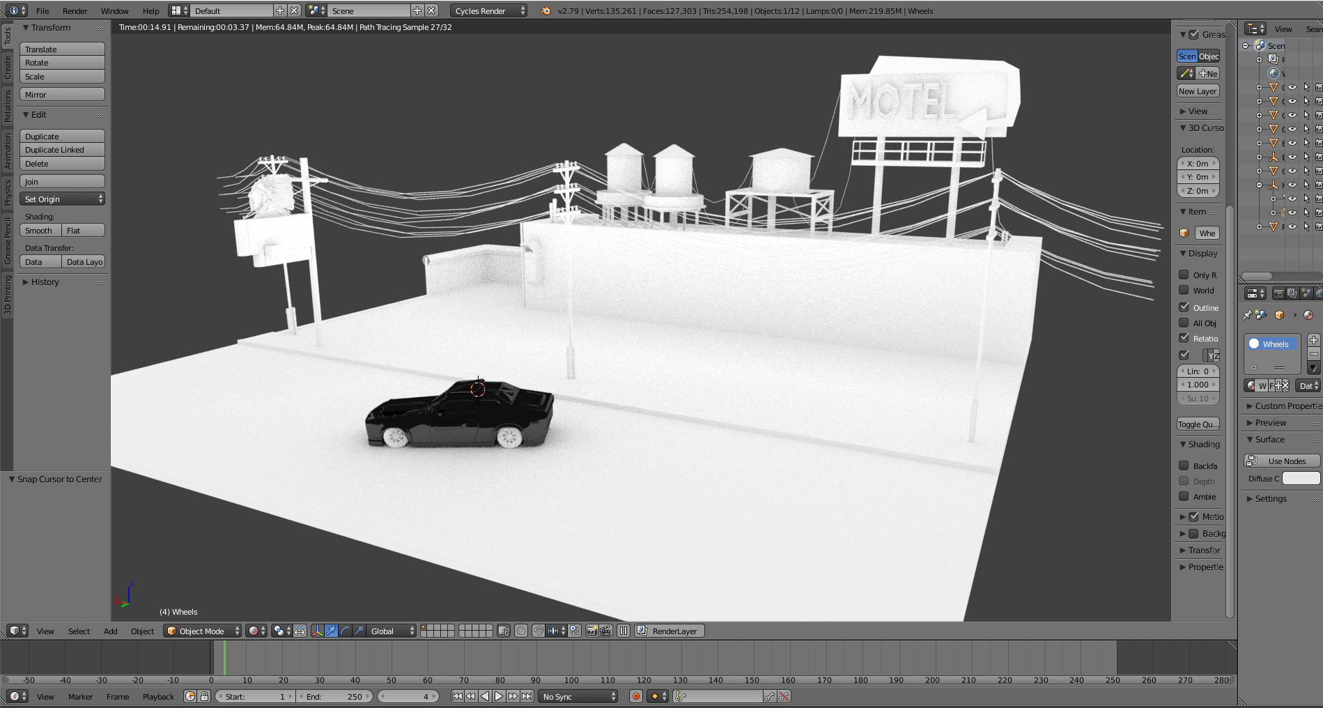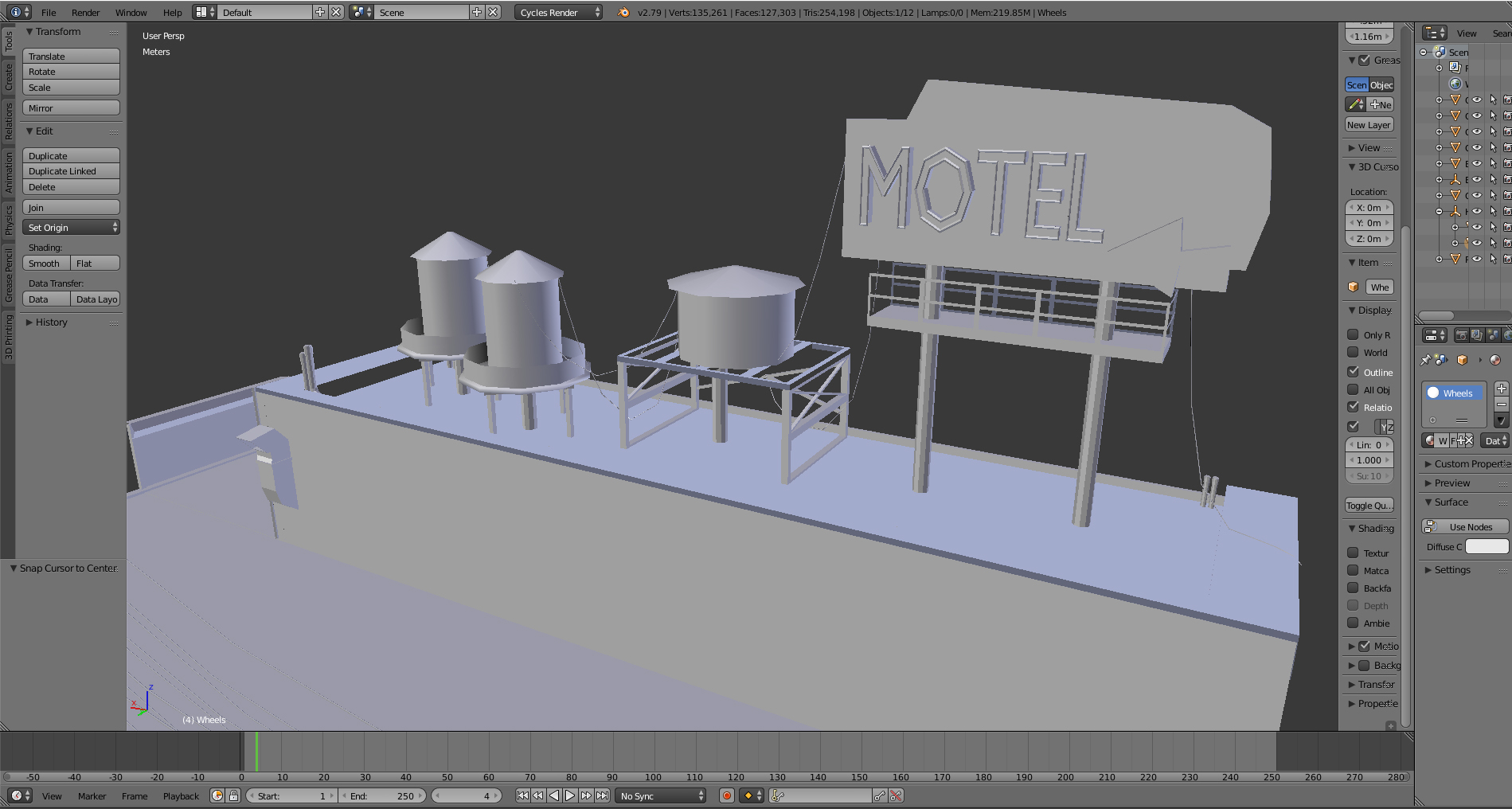 I worked on the environment in Blender. Today I modelled all objects and prepared the UVs for texturing. I tried to make a 'motel'-environment. For that I googled some cool motel signs and tried to modell them. I also started with texturing, but now it is already so late. That's why I stop for today. Next time I wanna finish the texturing and upload it on Sketchfab.