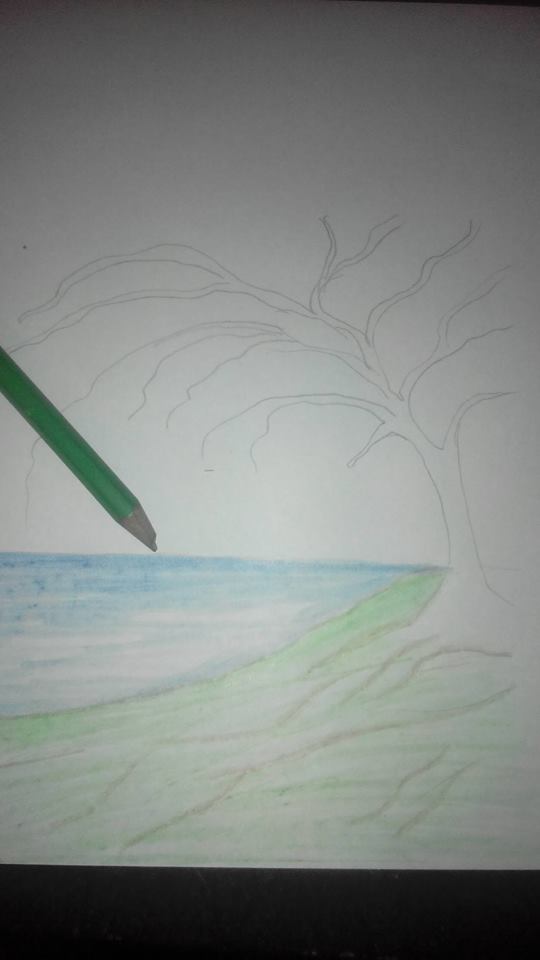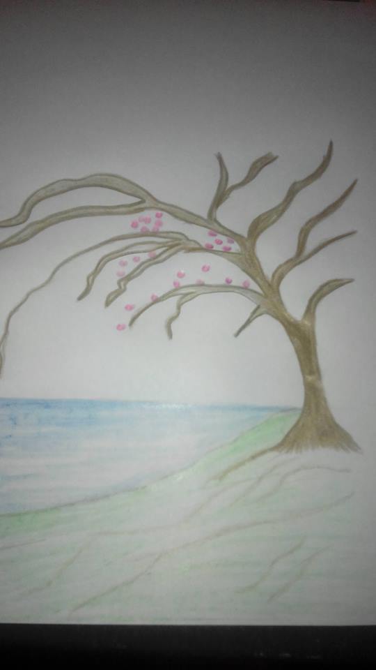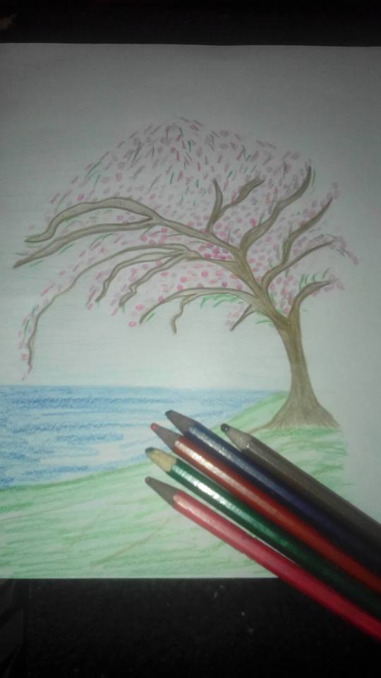 en esta pintura utilice lapiz de "colores parper mate" quise hacer un paisaje con un arbol a la orilla del lago, un arbol donde con tu imaginacion puedes estar bajo sus ramas y sentarte a ver el paisaje y desestresarte