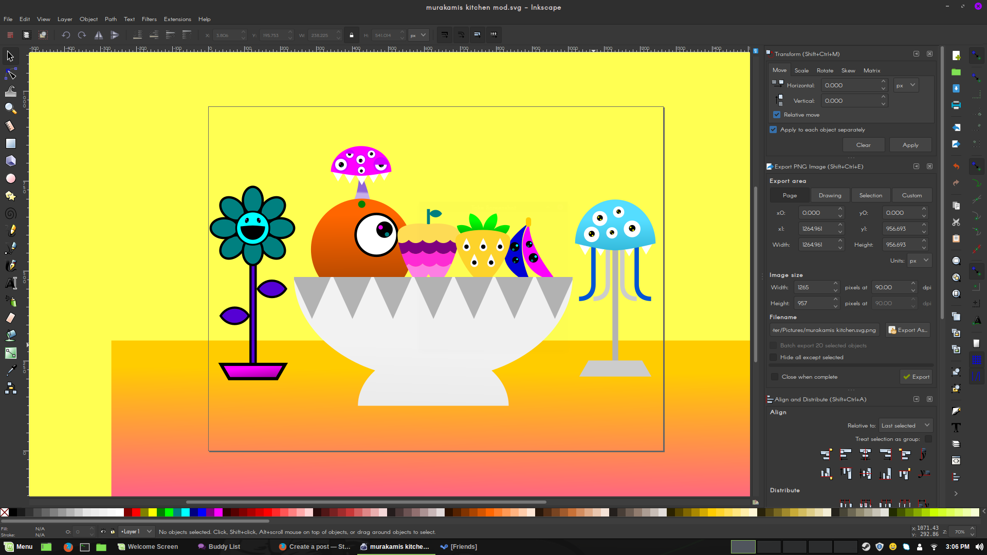 Last night, I was working on a rather simplistic looking piece, based on Takashi Murakami's superflat art movement. The artstyle, as well as individual elements are a homage to his style. The eyes, the flat design-like style, and even the flower on the very left of the art alludes to Murakami's work.