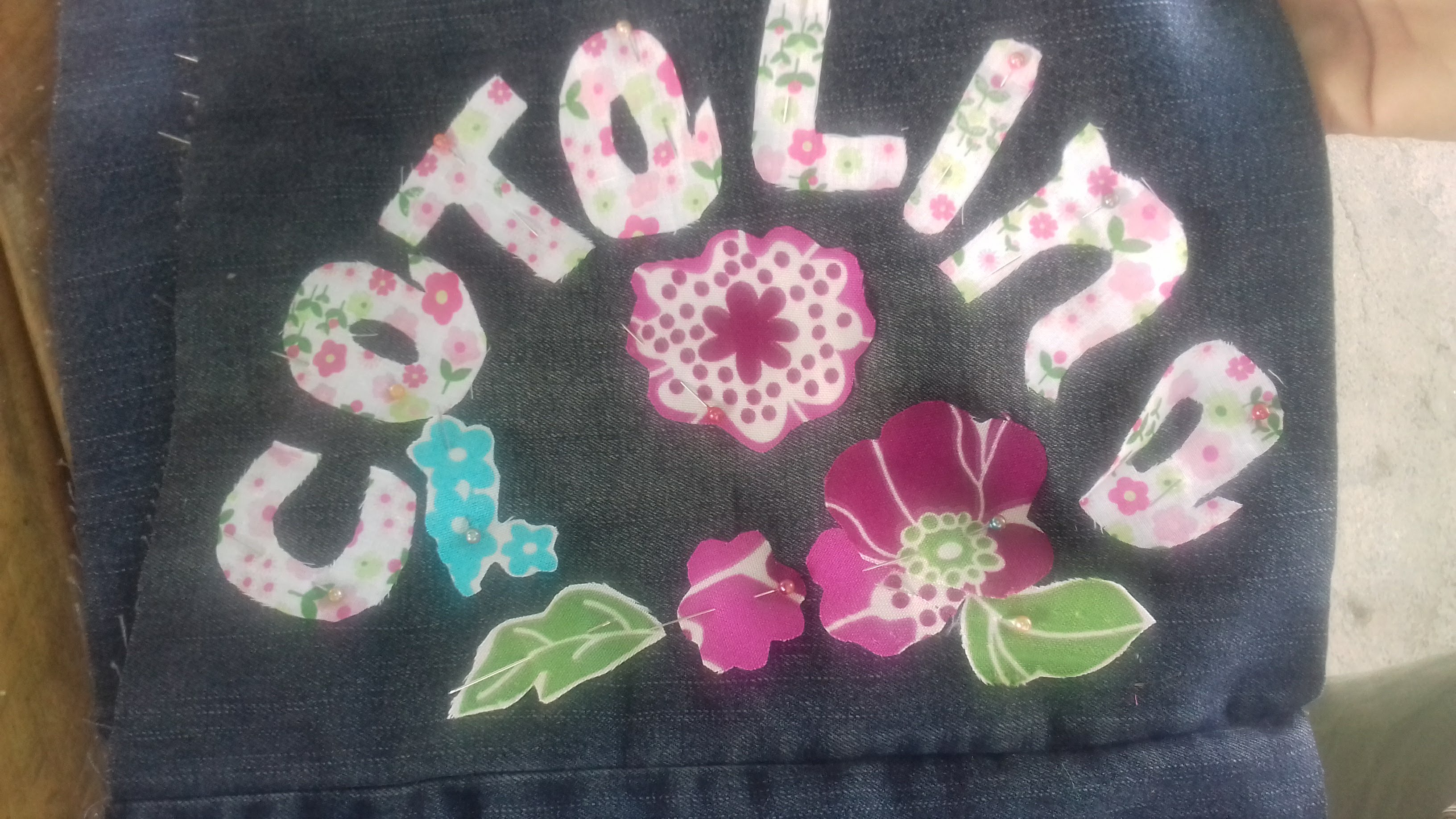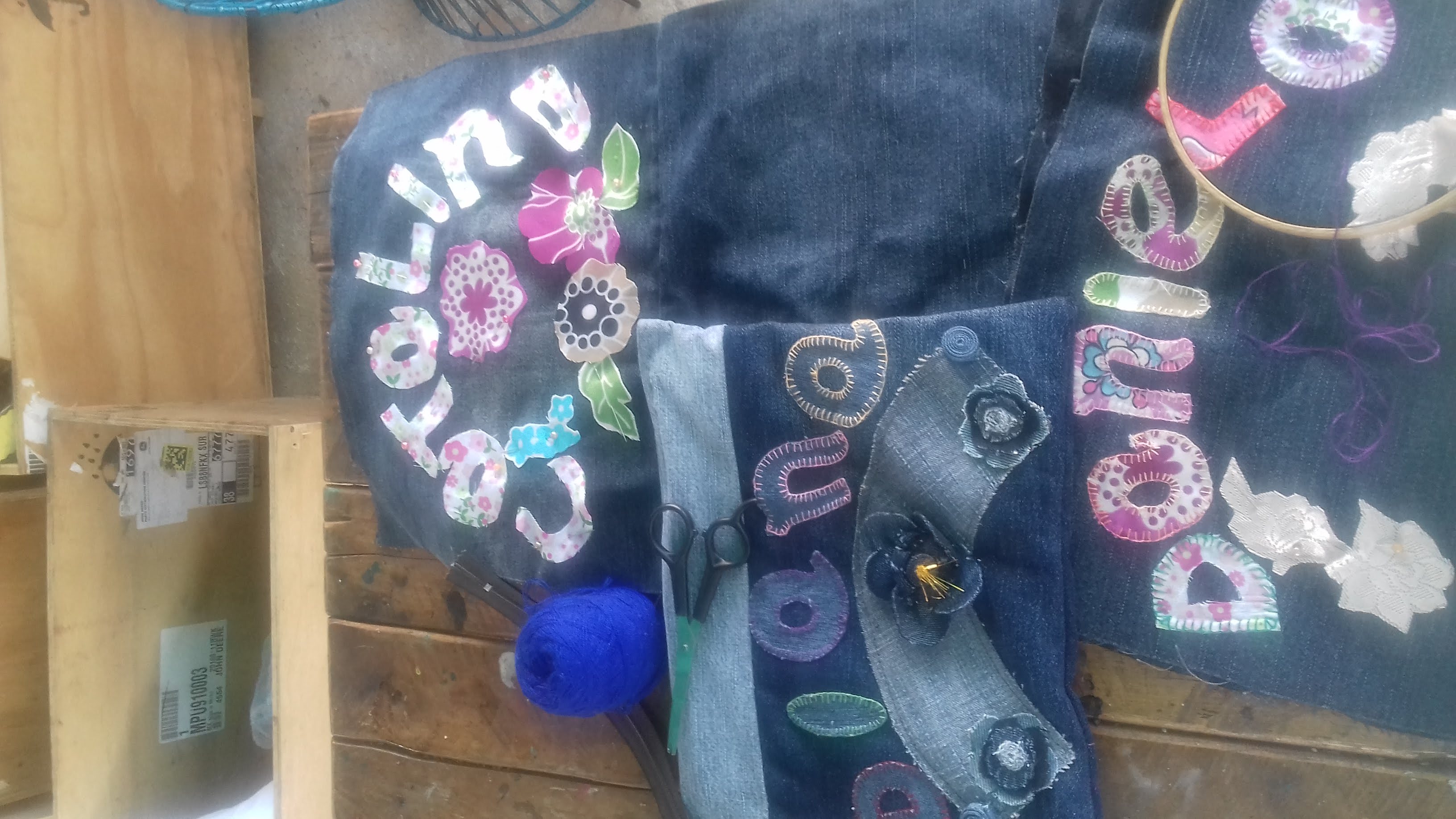 Later already having the rectangle, one begins to take out the letters or the details that you want to place them to decorate them, in this case, as they are personalized, we take out letters of jeans and colored cloth, as well as some flowers; everything will depend on the creativity and taste of each one.