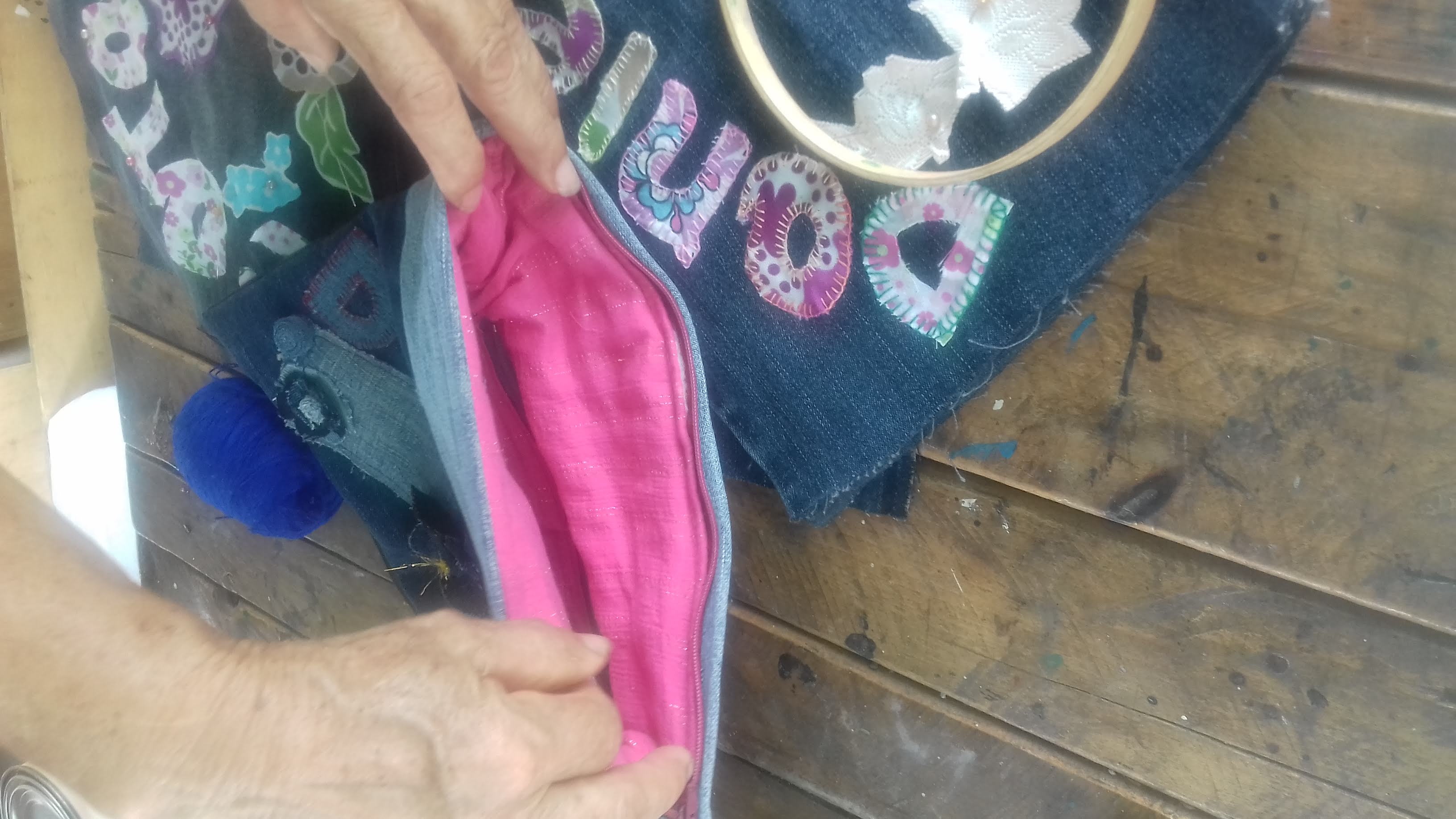 When all the letters and details are sewn together, we proceed to cut the fabric for the lining and with the help of the machine sews the lining and the closure, joining all the sides, leaving our beautiful holster: